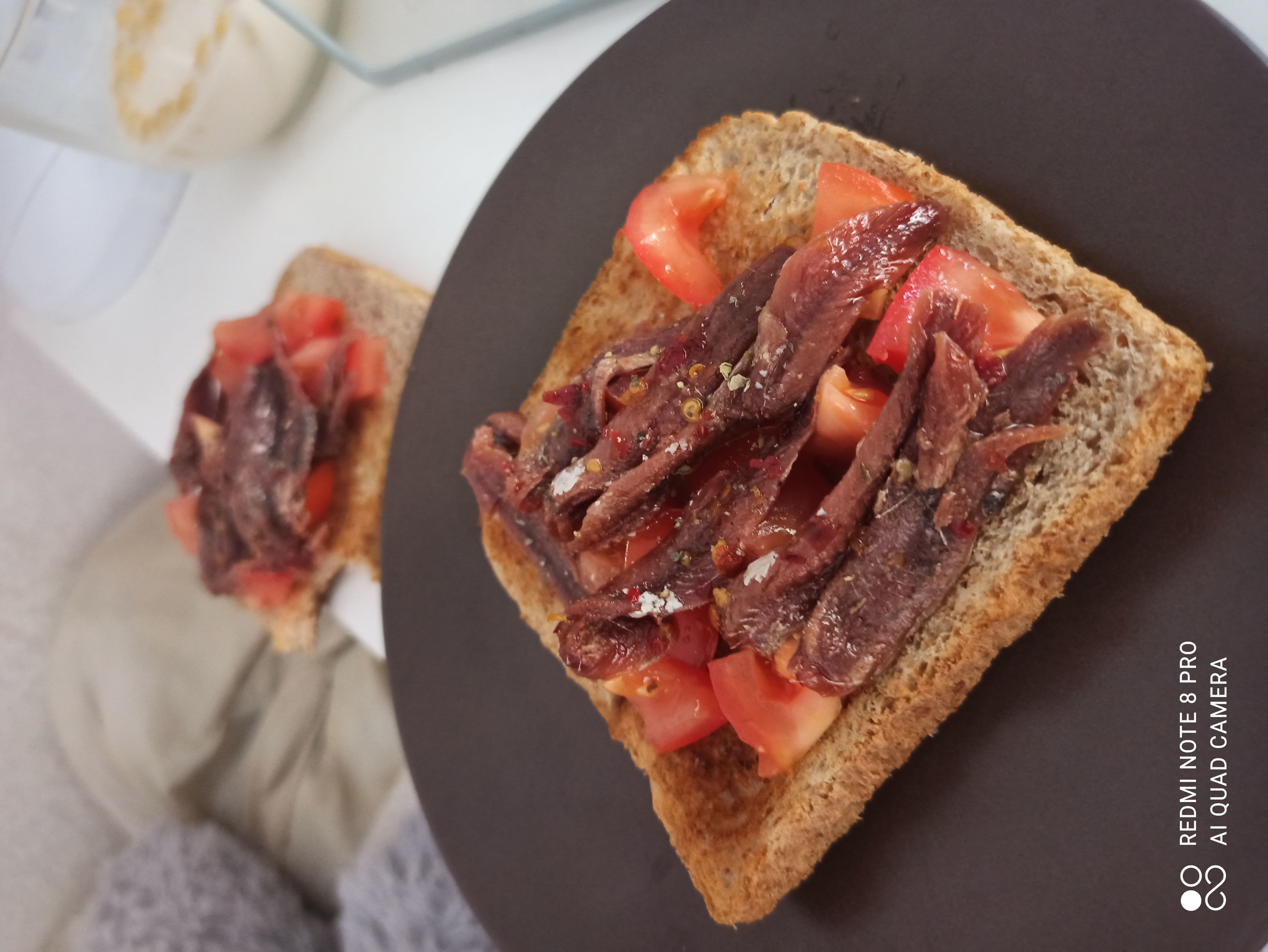 Mon plat préparé grace a JVC : TOAST AUX ANCHOIS/TOMATES![]()