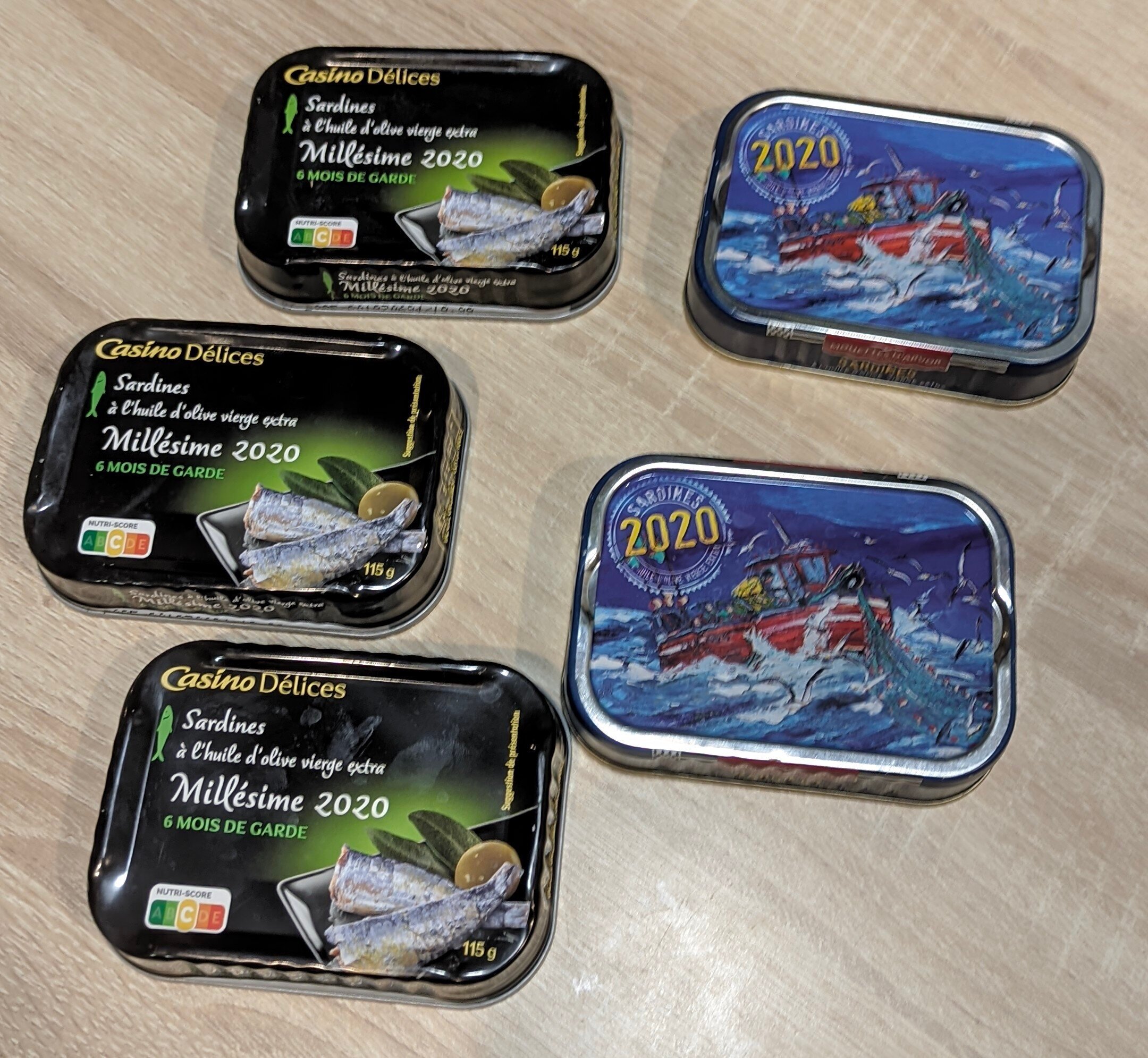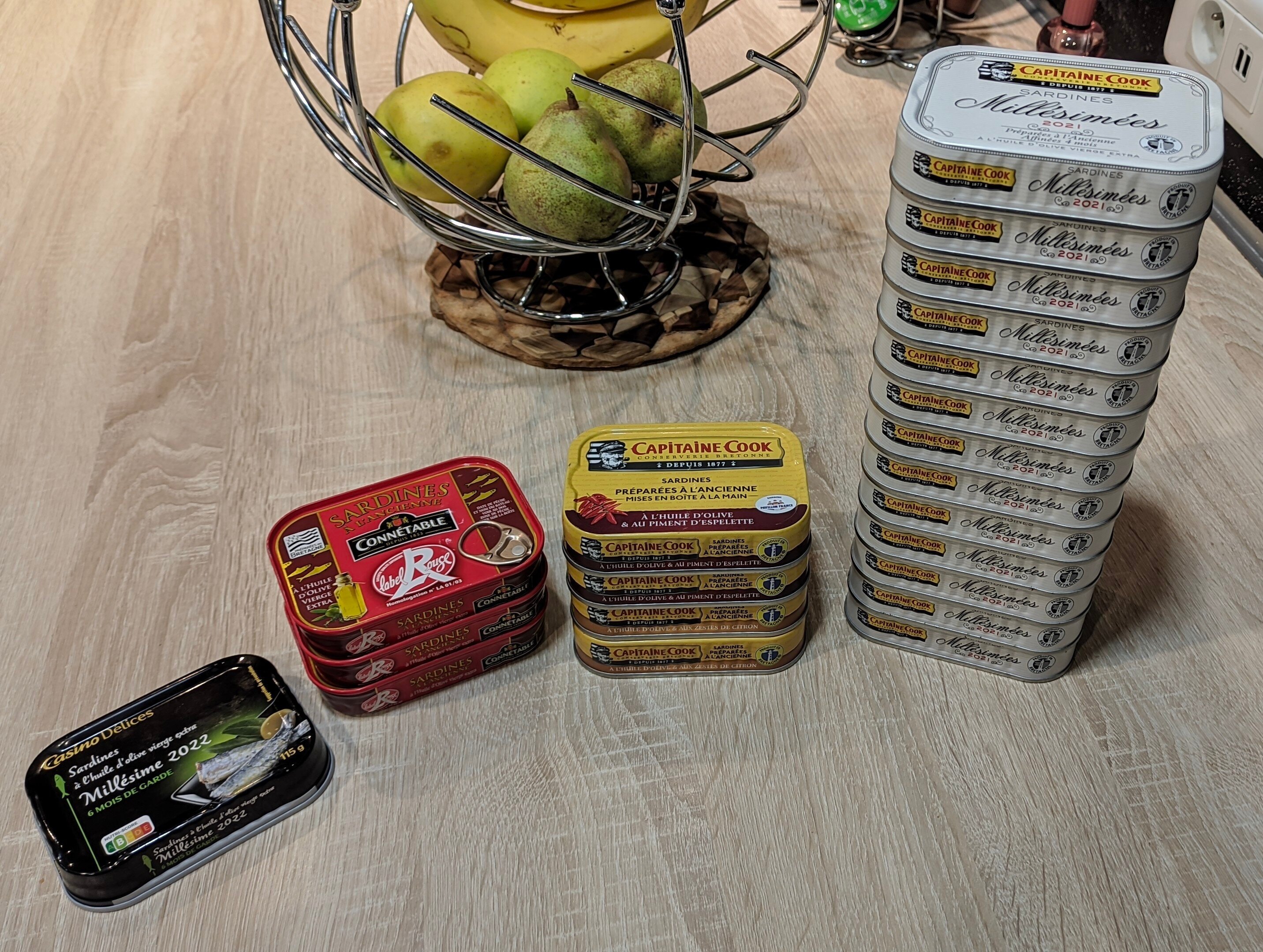 J'ai un reste de citron et piment en pack promo (NE, mois de juillet), mais je préfère les natures.J'ai acheté 2 boites 2022 casino. C'était loin d'être risible. Un peu trop jeune, huile très claire, peu prononcé et dorsale bien sentie. Mais je pense que j'en rachèterait pour stocker qq boites si je repasse devant.
