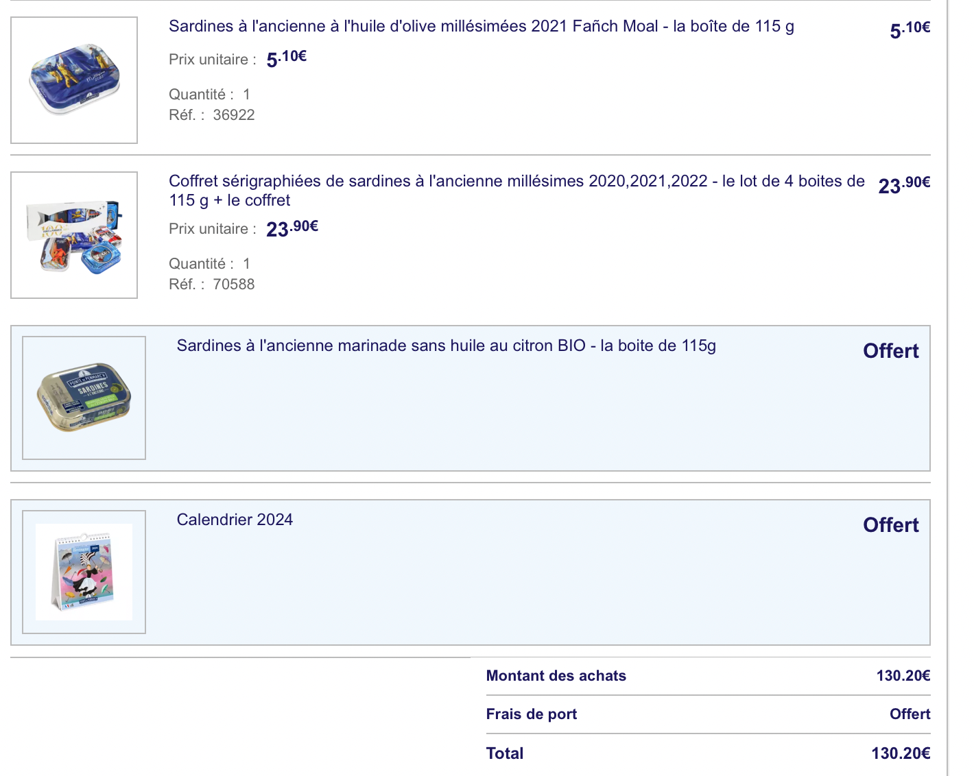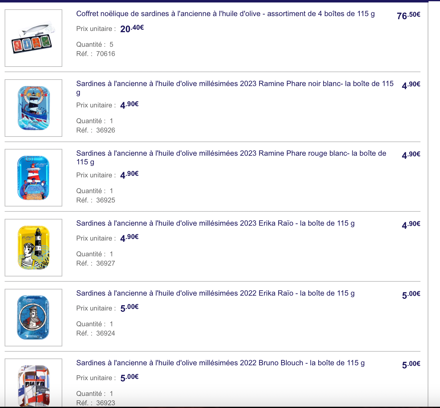 Si tu trouves des sardines de La Compagnie Bretonne ou des Quiberonnaises, vas y.