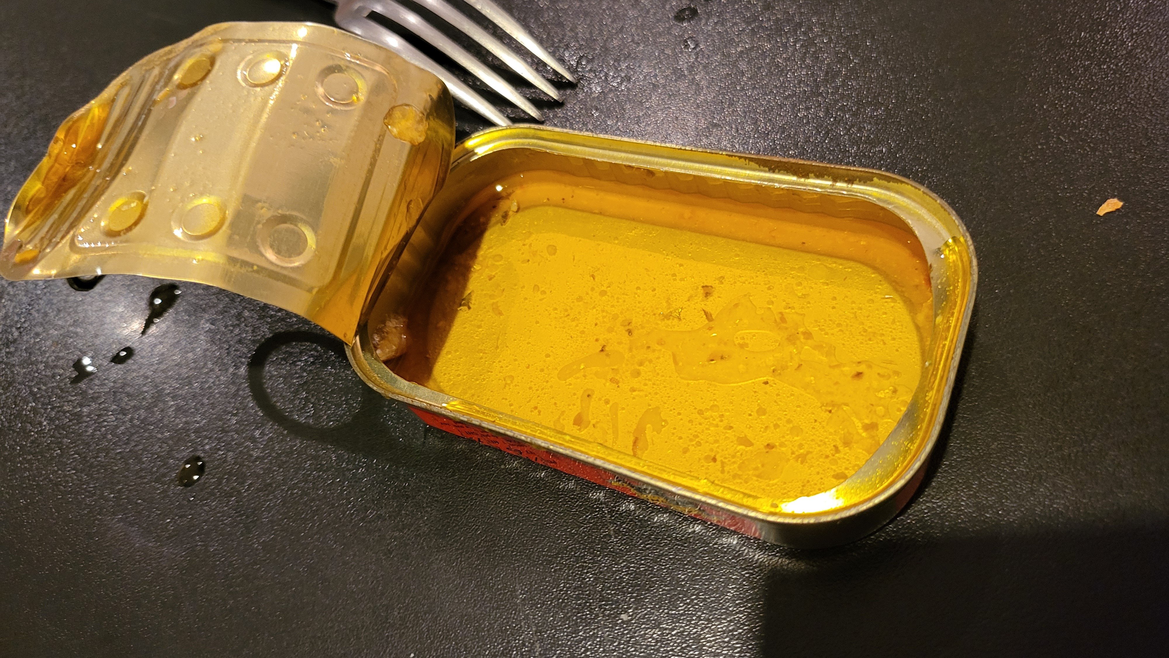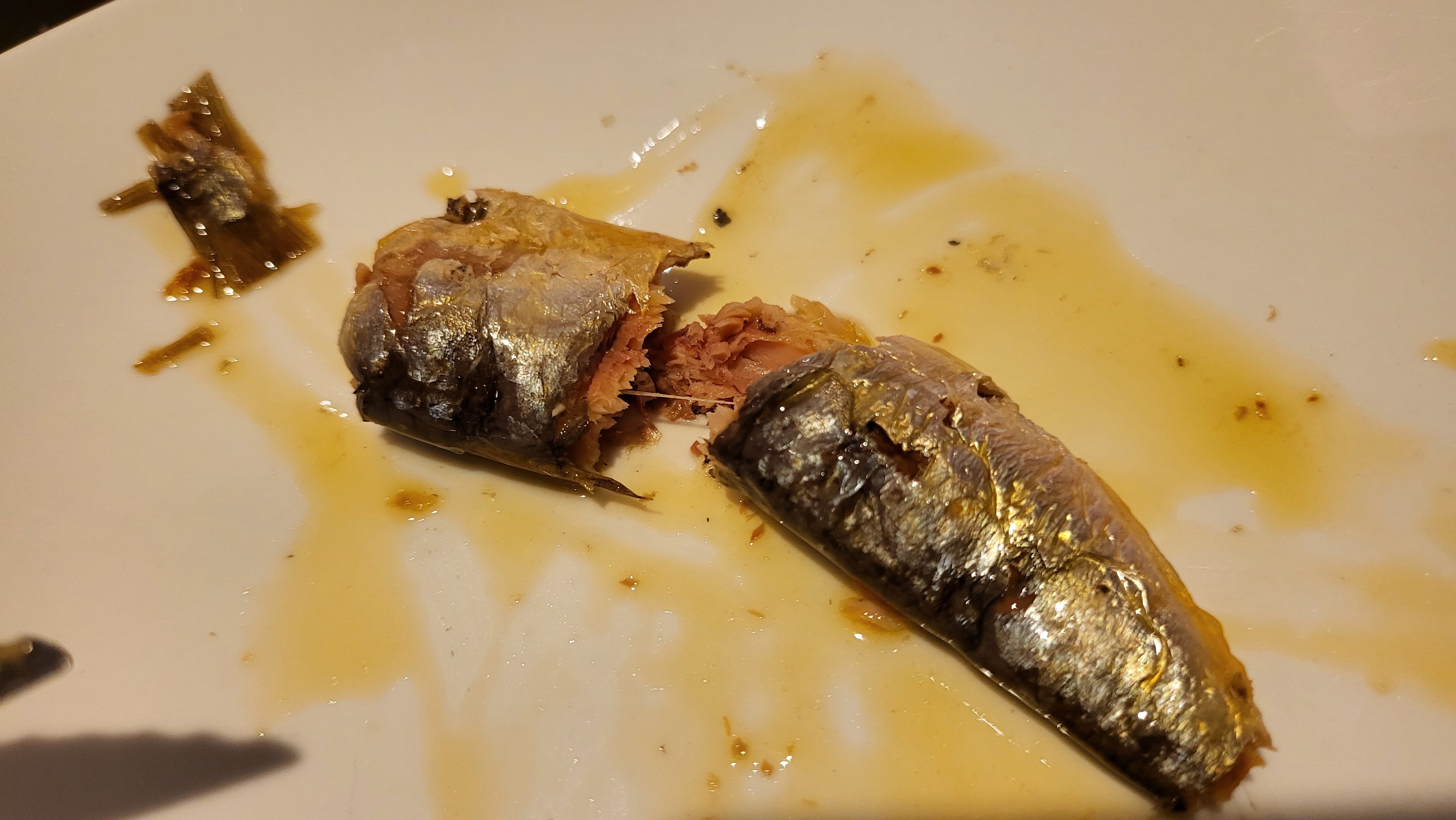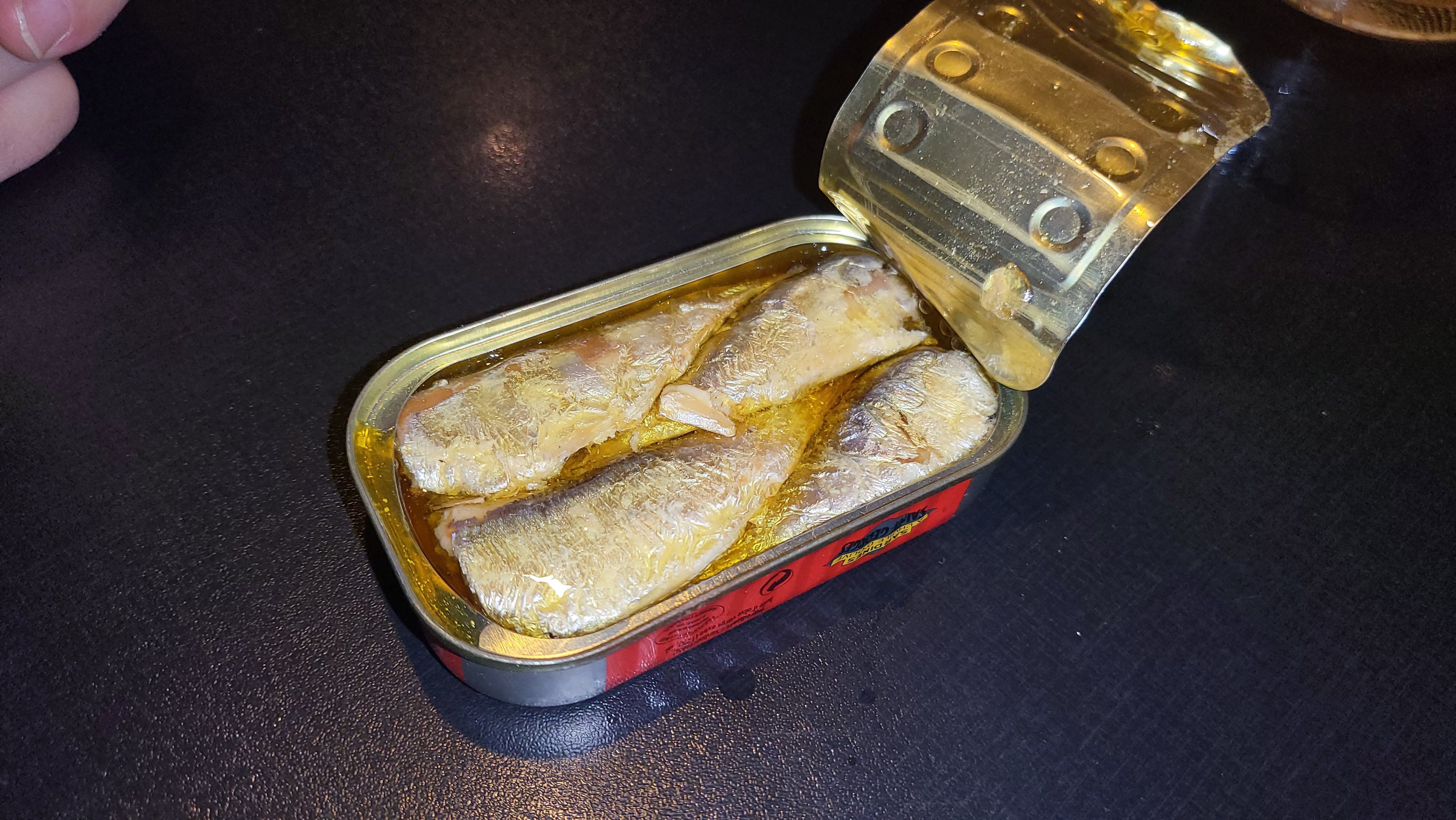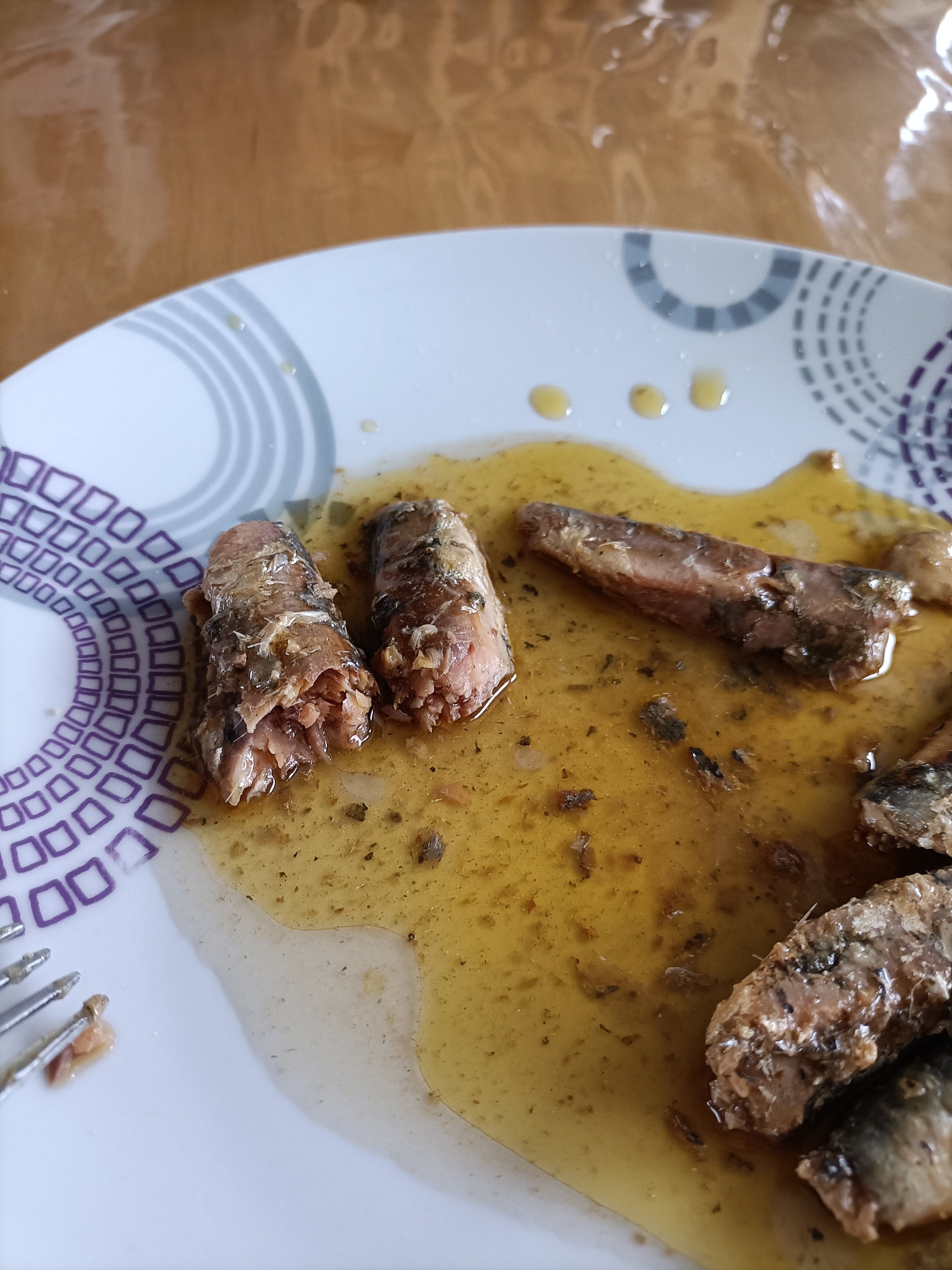 Voilà déjà les deux sardines chacun dégusté , reste plus que l'huile .