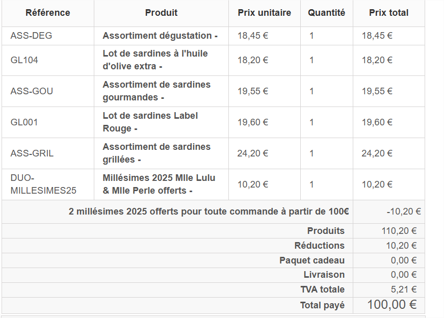 Mais tu paies aussi le design de la boîte et le millésime, qui n'est autre qu'une simple garde qu'ils font eux-mêmes au lieu de les vendre tout de suite (enfin normalement les sardines sont normalement un peu mieux en millésimées).Les Dieux, elles seront également bonnes dans l'ensemble, mais moins présentables si abîmées et moins "offrables" (pas de jolies boîtes).