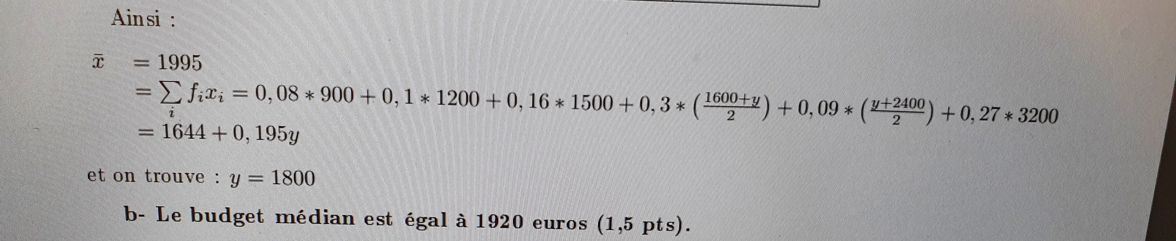1664 + 0.195y = 1995Je sais ça la question c est plutôt comment trouver 0.195 et 1664 pour retrouver la valeur de la moyenne 1995