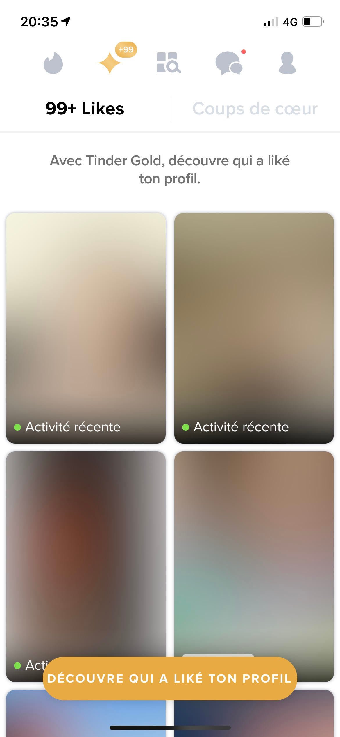 Voir à payer l'option premium parce que je vois pas de le visage des likes