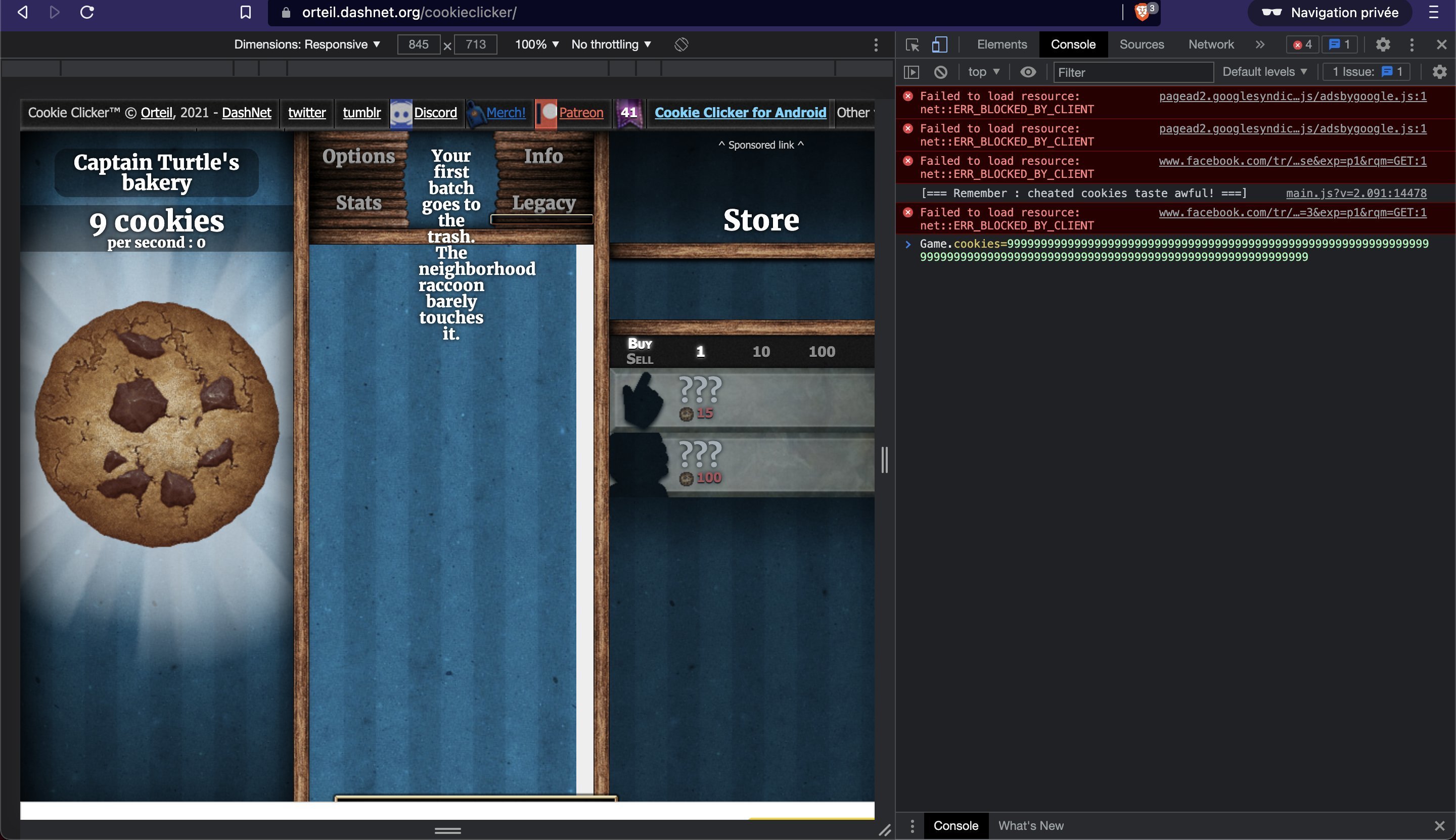 Voila vous êtes sortis de la boucle du cookie clicker , et vous avez même débloquer un succés seulement débloquable en trichant.