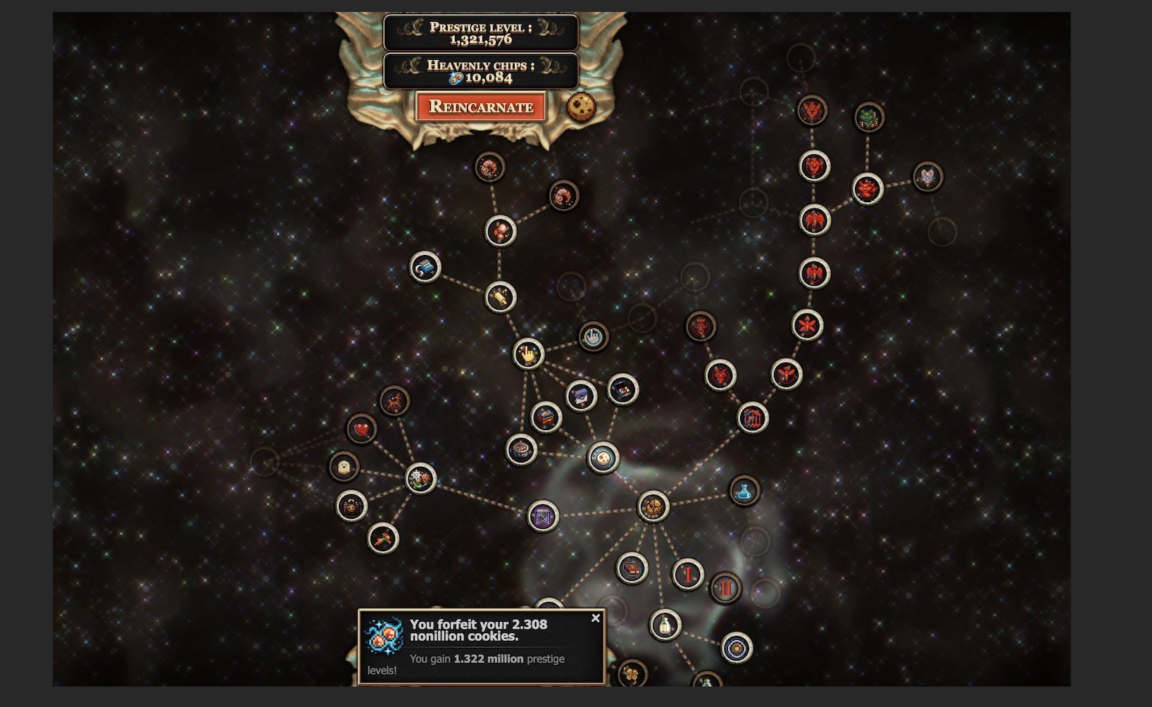 On passe de 100 cookies par seconde , a 200 000 , puis le million , les billions. On rattrape les cookies per second qu'on obtenait seulement en cliquant sur le golden cookies pendant 1MN17.