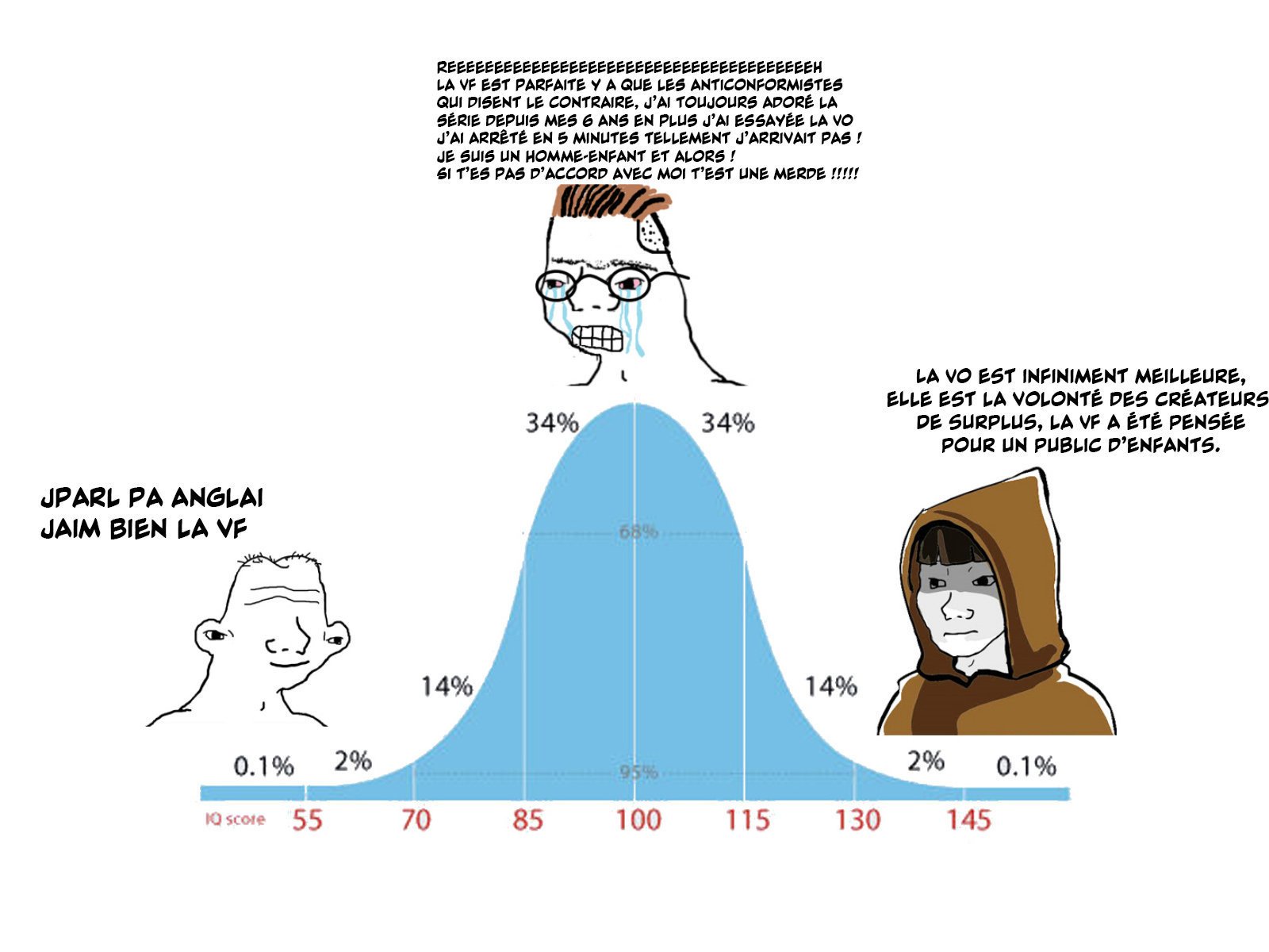 Que le public soit différent selon les voix prouve que l'adaptation est faite en dépit des volontés des créateurs et que la VF est à chier.