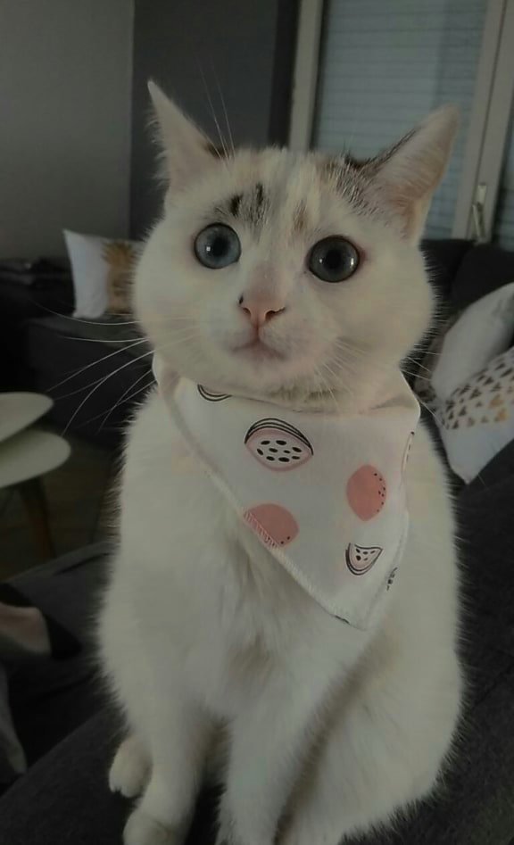 Il ? Pourquoi tu lui mets des foulards de femelles alors ? Il va surtout pecho des chats mâles avec ça
