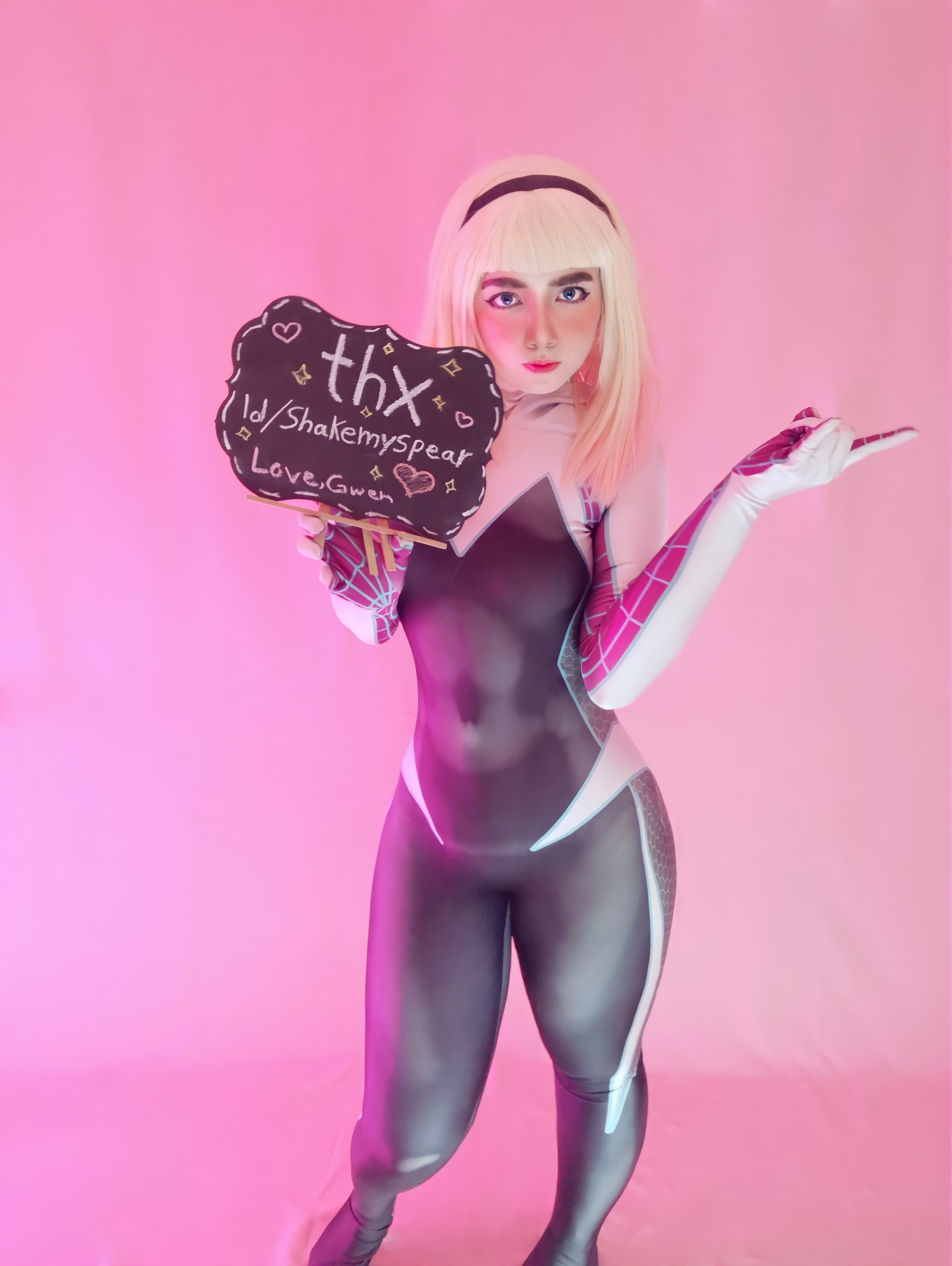 Si possible, je pensais enlever son visage et faire quelque chose de mieux en mettant celui de Gwen Stacy des comics, en tenue ou non mais son visage des comics, pour rendre le truc plus joli, genre ça :