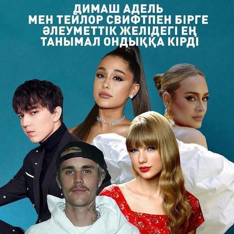 Dimash est à la neuvième place, devant Scott. La chanteuse américaine Taylor Swift a pris la première place du classement de popularité sur les réseaux sociaux, le membre de K-Pop BTS JIN a pris la deuxième place et une autre actrice sud-coréenne, Blackpink Lisa, a pris la troisième place. Le classement comprend également Adele, Justin Bieber et Ariana Grande.