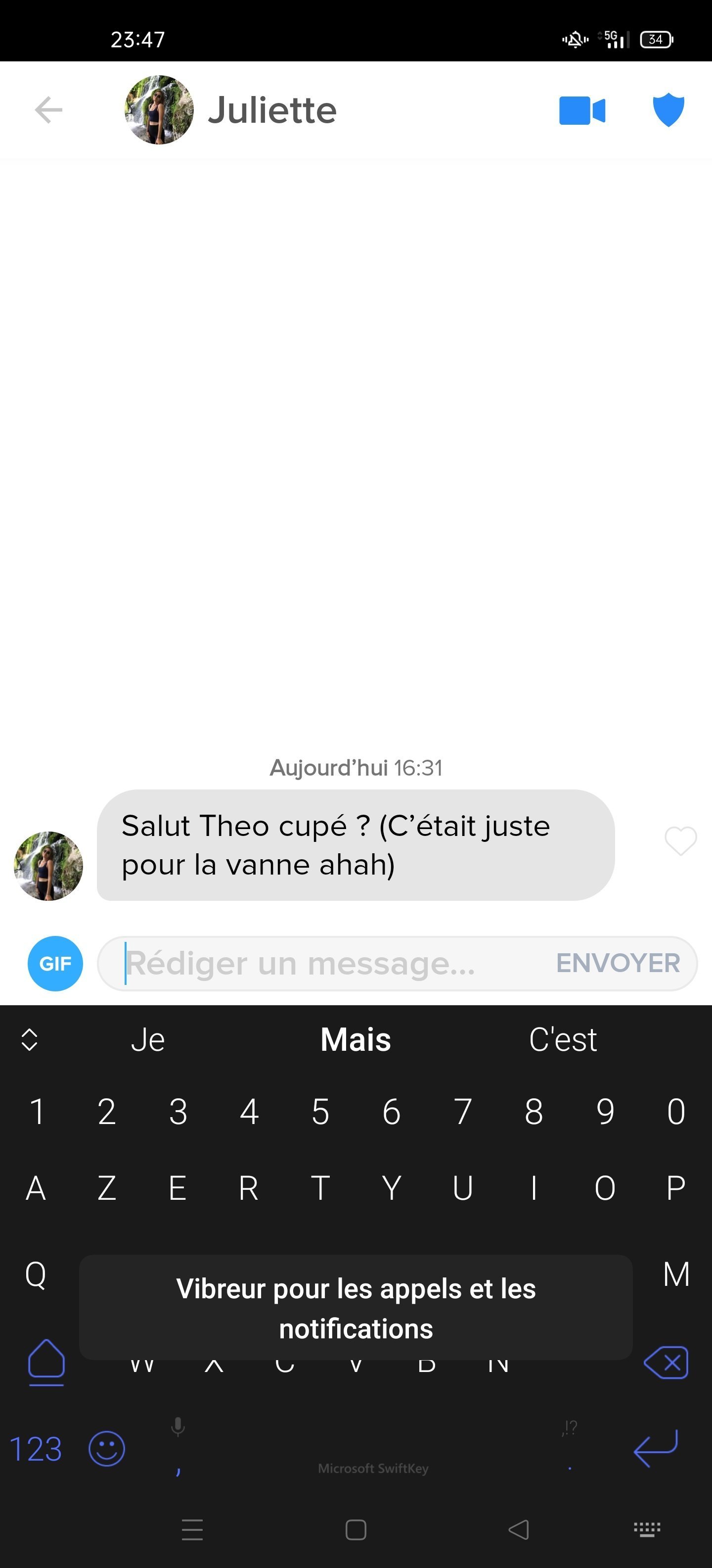 Le 15 novembre 2021 Ă 23:51:57 : tu dois ĂȘtre bg pour que non seulement elle envoi le premier message mais en plus qu'elle tente un truc aussi gĂȘnant