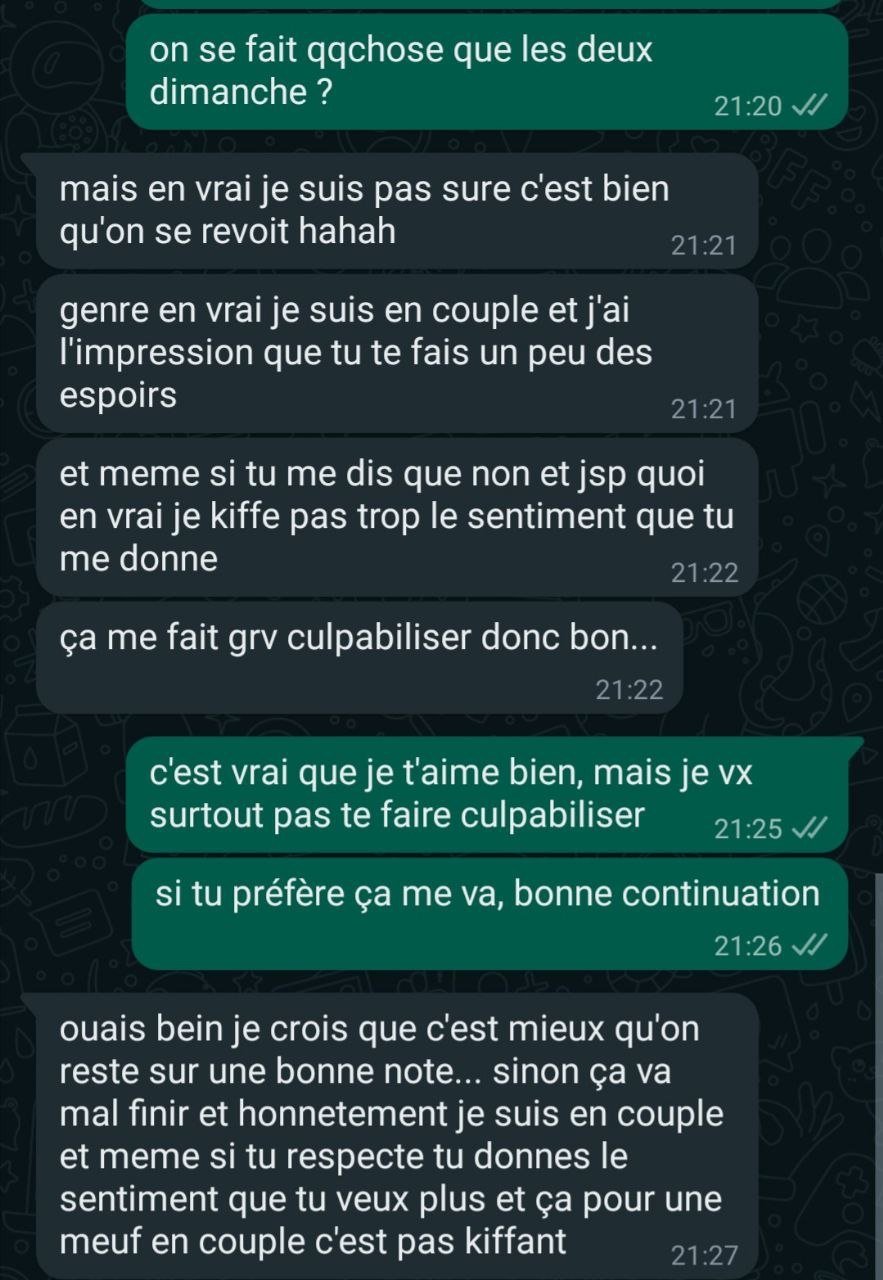 Jusque-là tout va bien, OR quelque jours après elle m'explique qu'elle est en couple