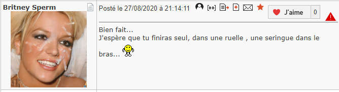 + Ne feedez pas Britney Spearm, c'est un névrosé hypocrite qui se fait passer pour une meuf sur le forum
