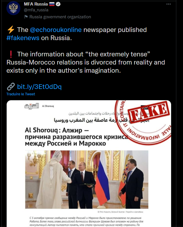 La Russie qui demande à l'algérie d'arrêter avec ces fake news :