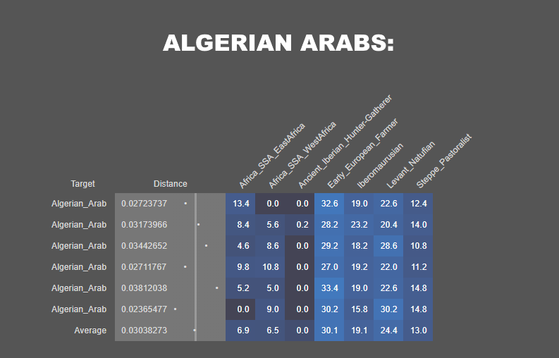 Quand on check leur résultats autosomaux, ils ont des taux anormalement élevé de natoufien (un composant typiquement lié au moyen-orient surtout chez les arabes) :