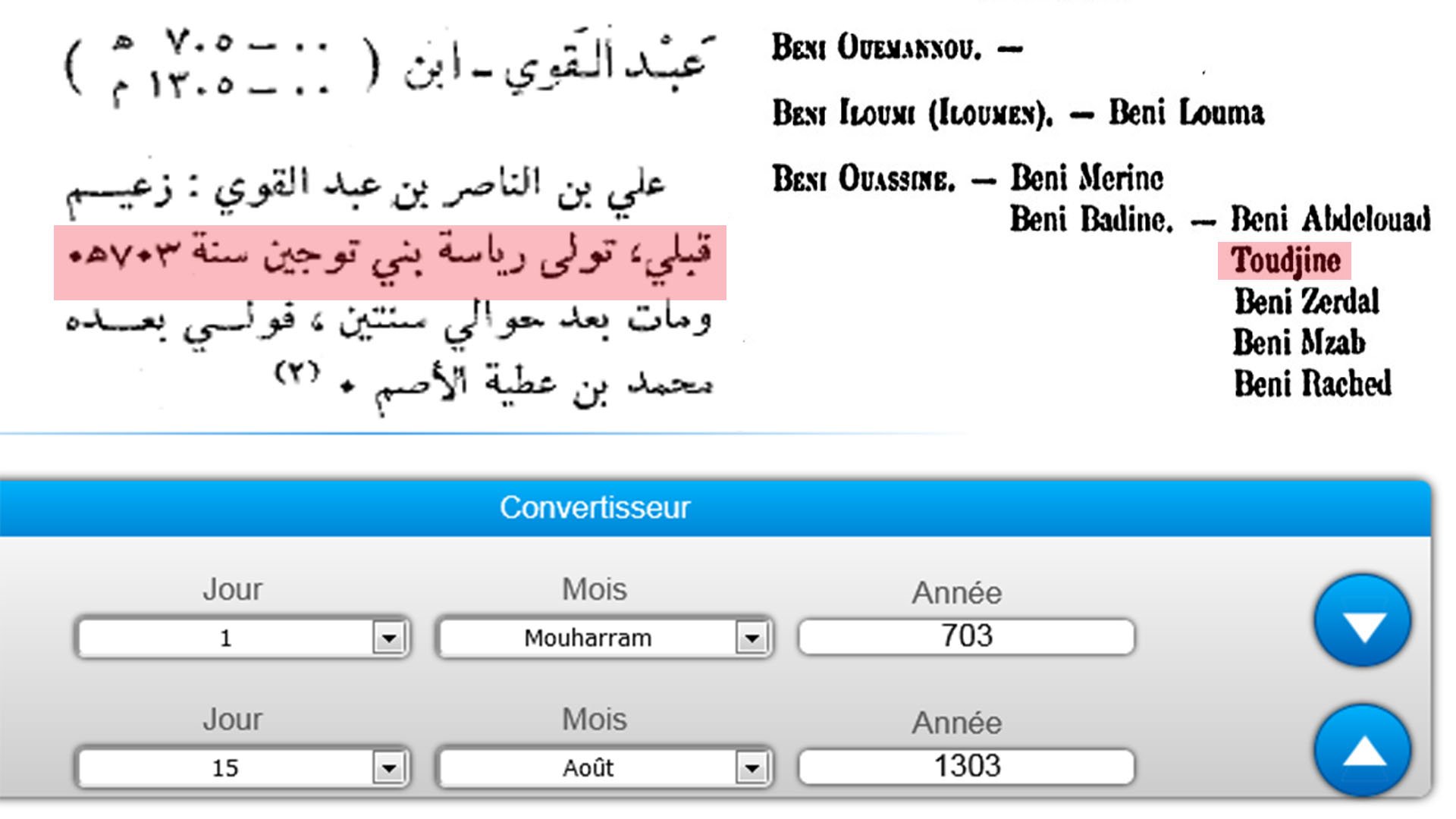 L'Emir Zianide Othmane Ibn Yaghmorassen le nomme Emir des Toudjine![]()
