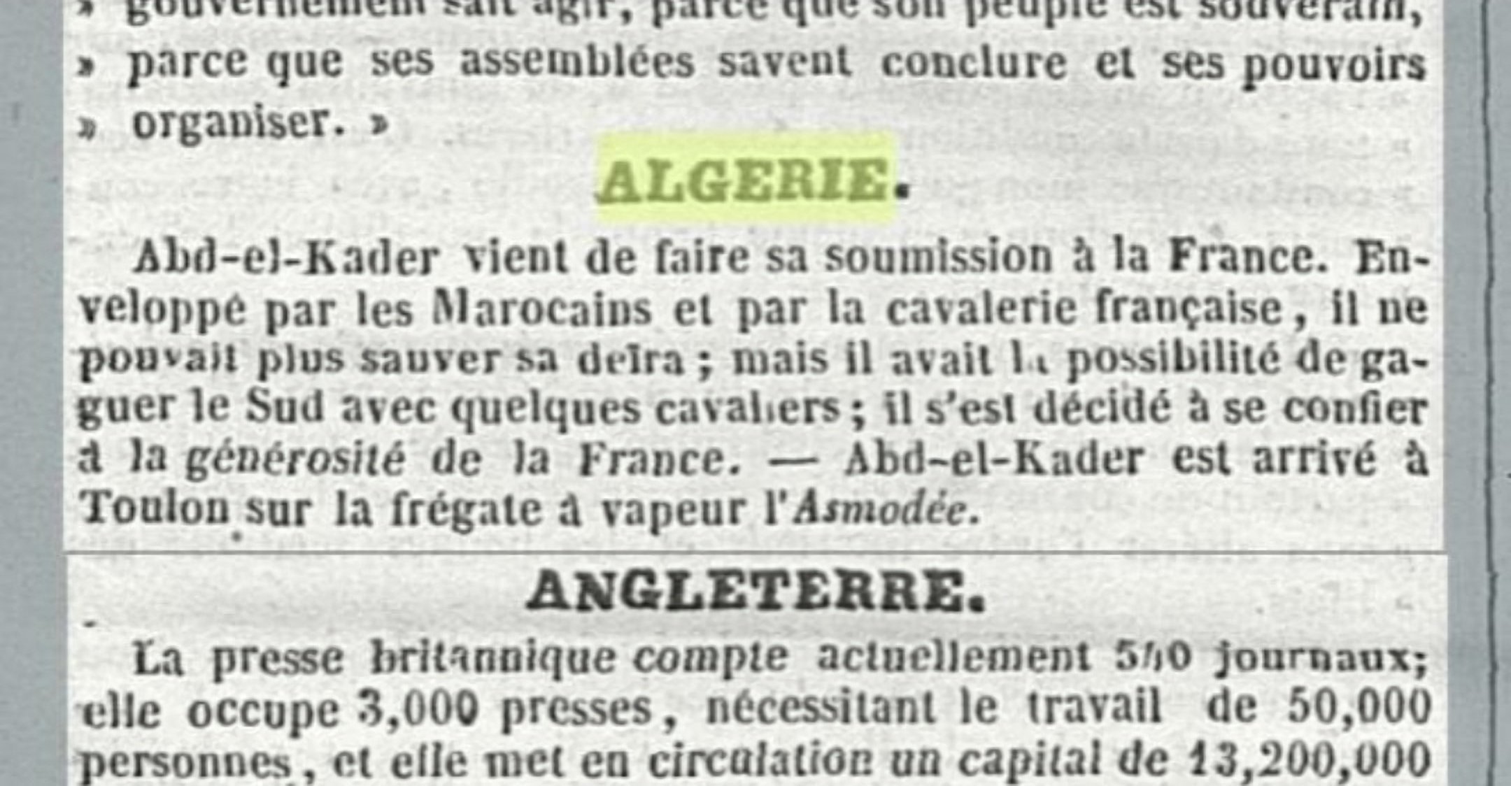 , tu as branché les deux câbles à la fois " je vais voler la personne d'Abdelkader aux algériens