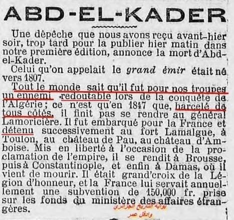 ennemi juré de la France, Abdelkader s'est rendu que parce qu'il était encerclé de toute part, en l'occurrence par les marocains, larbins de la France![]()