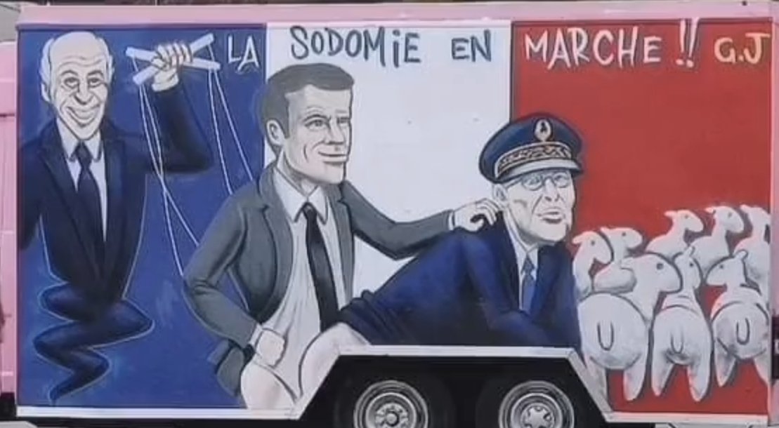 Un autres horribles crime de lèse majesté a eu lieu, heureusement la gendarmerie a eu le courage de brisé la vitre du camion pour interpeller l’horrible séditieuse.
