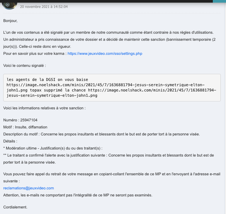 La DGSI sous-traite le spam au FBI les descos, le gouvernement français n'a pas assez de moyen pour être h24 sur le forum