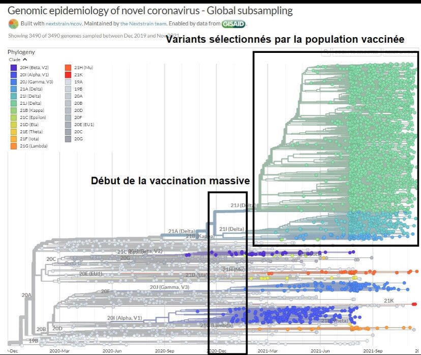 Une fois ce variant occupant la majorité de la population (si vous regardez les tranches de domination par variant, vous verrez qu’immédiatement après le début de la vaccination massive, les pays ont une montée du nombre d’infectés par Delta, puis il domine et devient le seul) ; les vaccinés deviennent un bassin de transmission dans lequel les mutations peuvent se faire tranquillement sans être détectées.