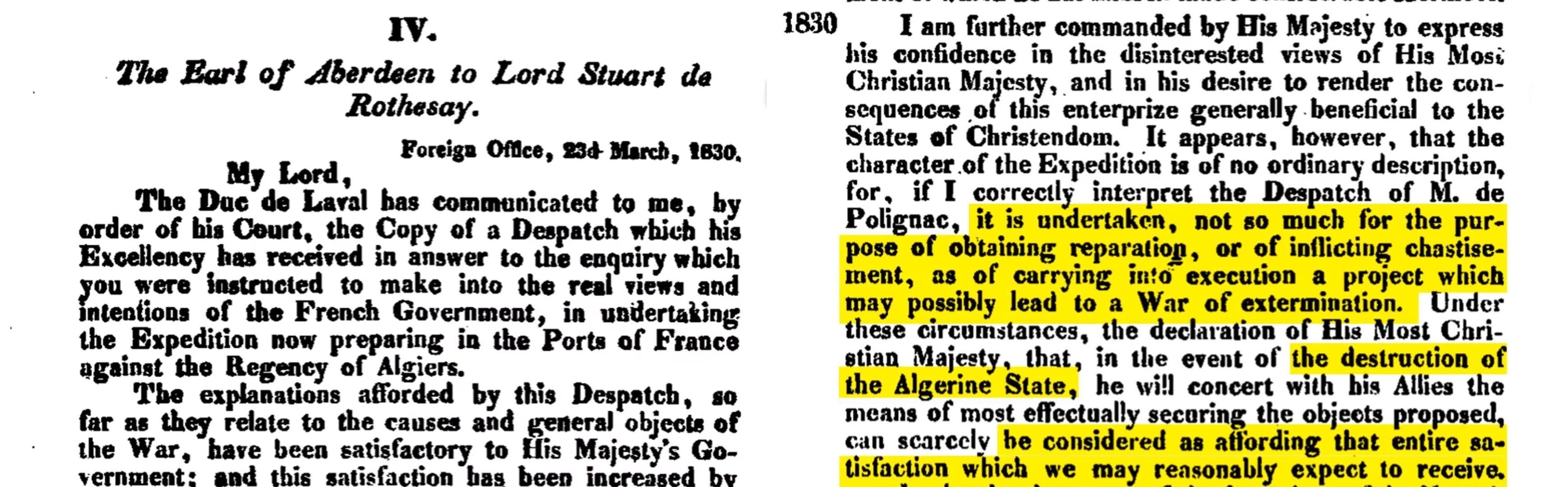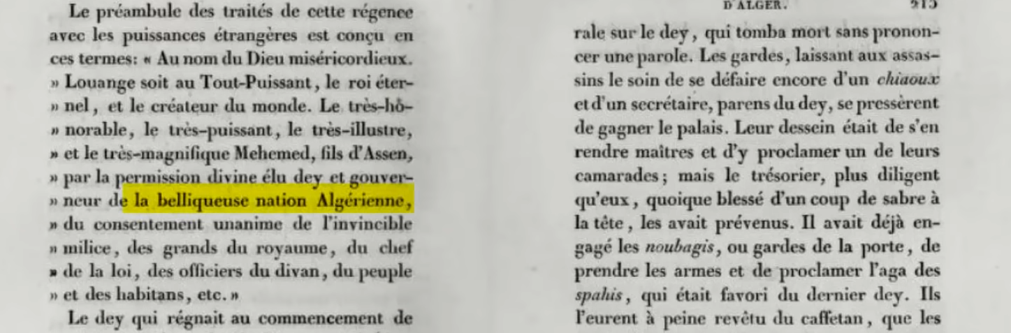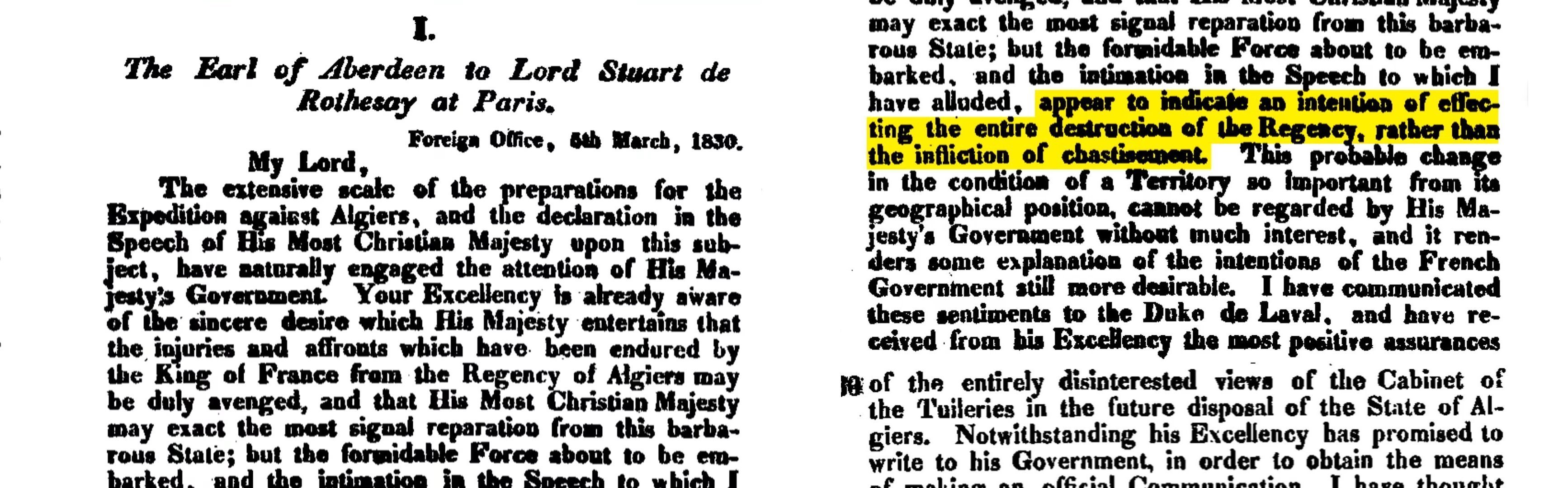 mais bel et bien pour anéantir l'Algérie, tuer des millions d'Algériens et tout effacer, elle le dit en plus lors de ses correspondances avec l'Angleterre quelques semaines avant l'invasion