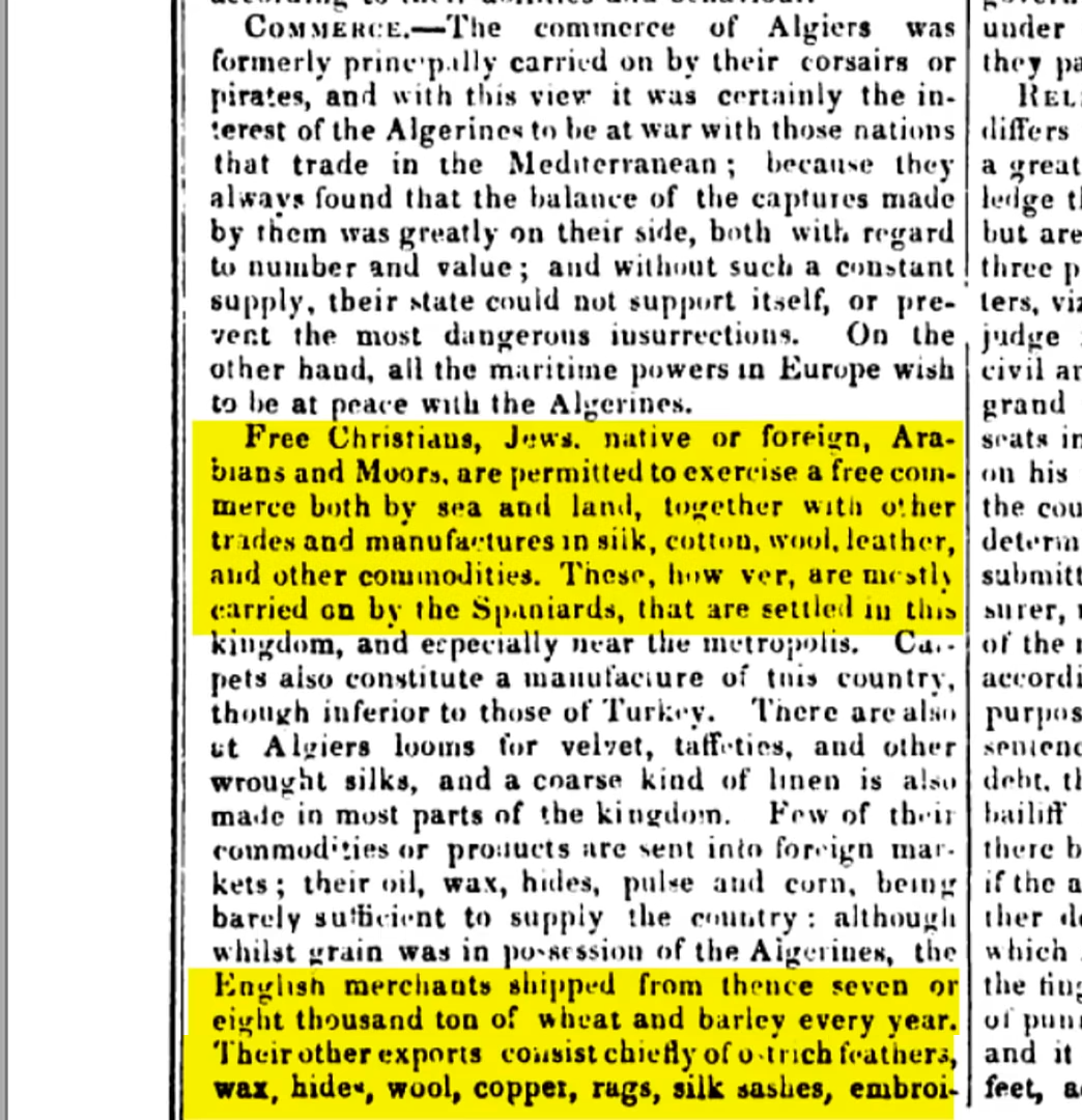 les algériens nourrissent les français avec leur blé lors des campagnes napoléoniennes ( dette jamais payée par la France )