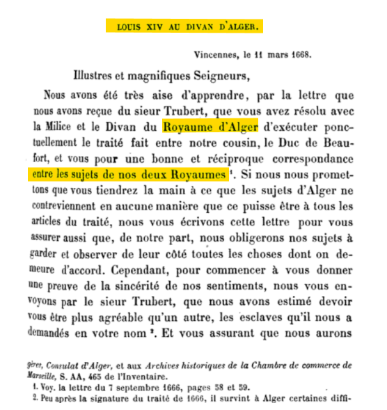 et bien évidemment, l'Algérie la plus grande puissance militaire e d'Afrique et l'une des plus grande en méditerranée ( "victoire de l'islam" Louis IV, le sultan ottoman, le roi d'Angleterre et le Dey d'Algérie