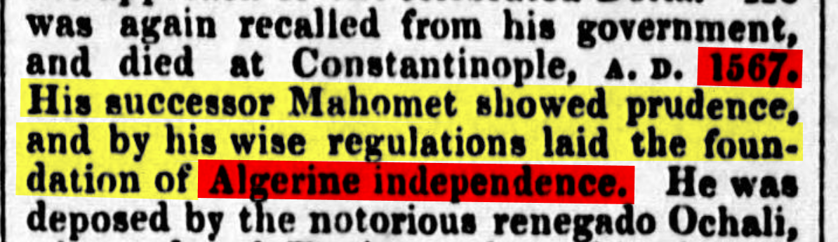 le dernier monarque musulman algérien [1830] descendant du premier monarque musulman algérien [742] )