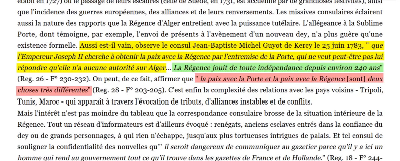 l'Algérie est officiellement indépendante de la Constantinople depuis 1659-1671