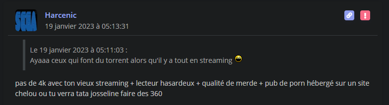 Bon allez sortez le, encore un qui croit qu'il va dead ça alors que j''aurais toujours les contre-argument, je vous attends les pro-torrent