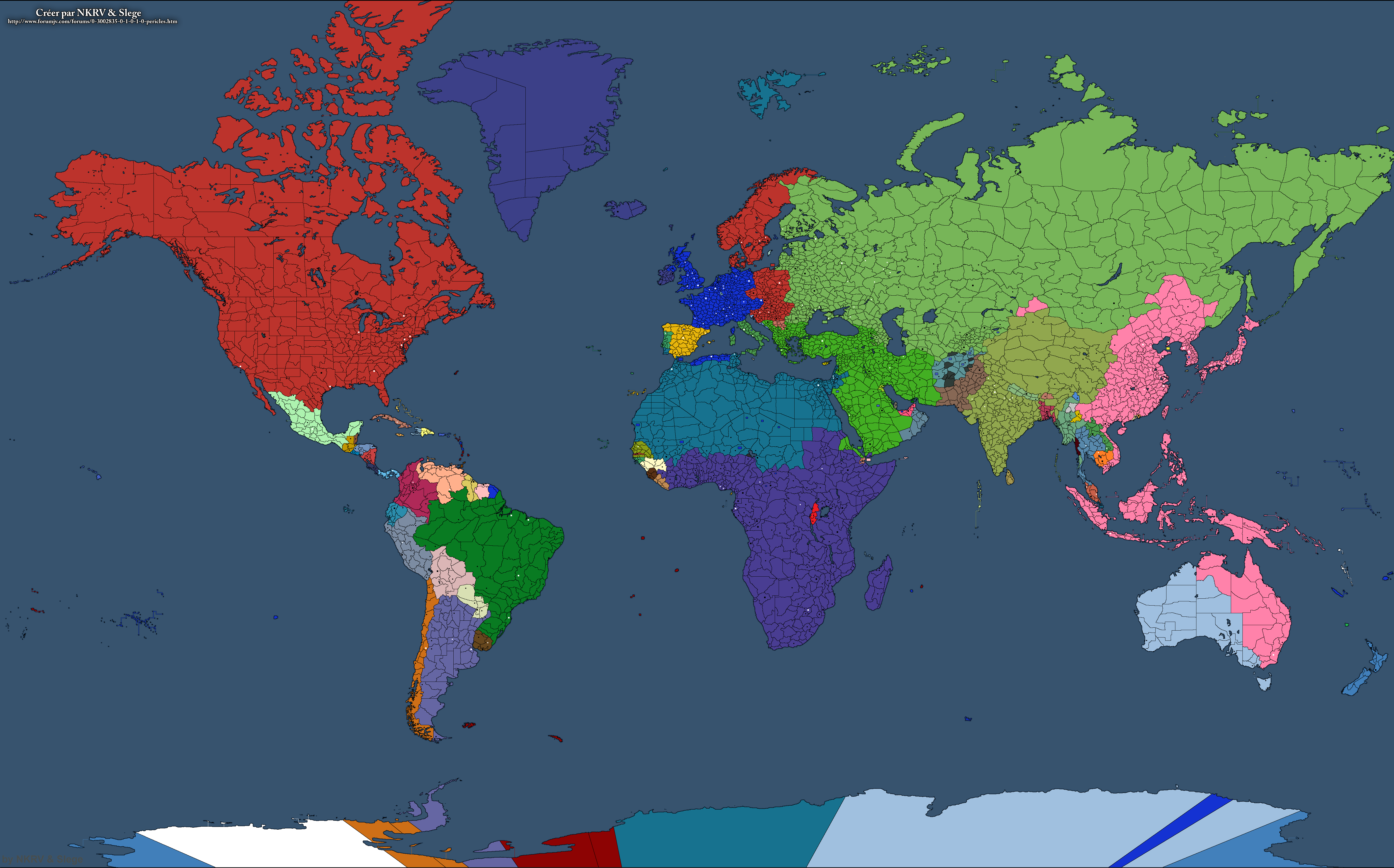 Groenland attaque les terres les plus au nord au dessus de la Pologne/Russie et si assez de points attaque l'extrême Nord du Canada