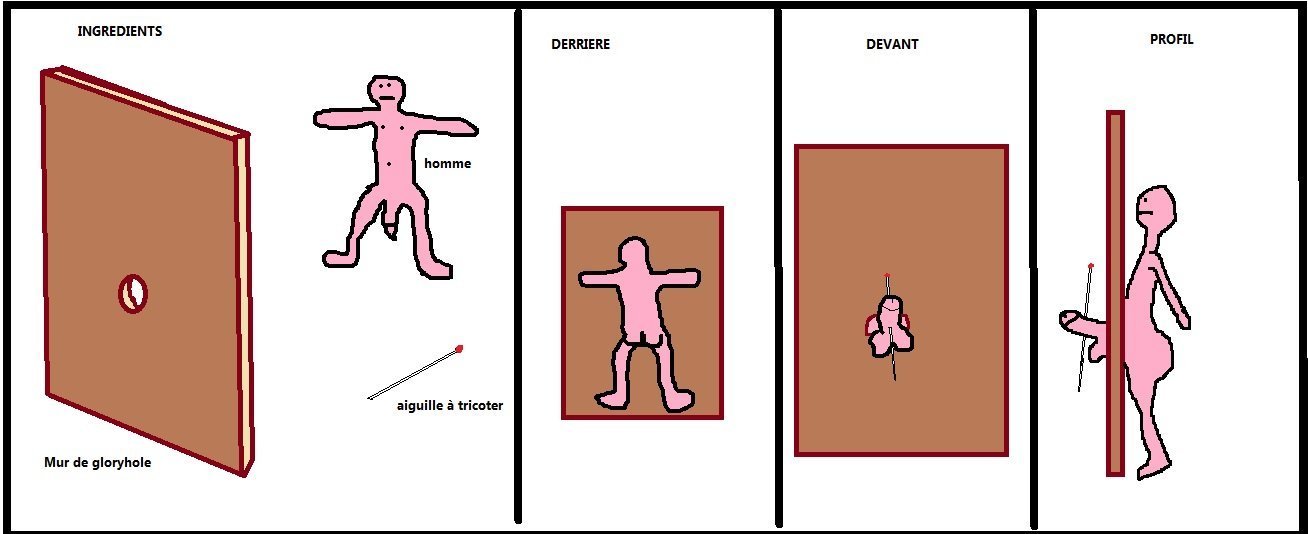 Vous vouliez vous faire plaisir en allant voir une escorte dans un gloryhole (un trou dans le mur, vous y insérez votre Z et de l'autre côté, l'escorte voit votre Z qui dépasse et s*ce)