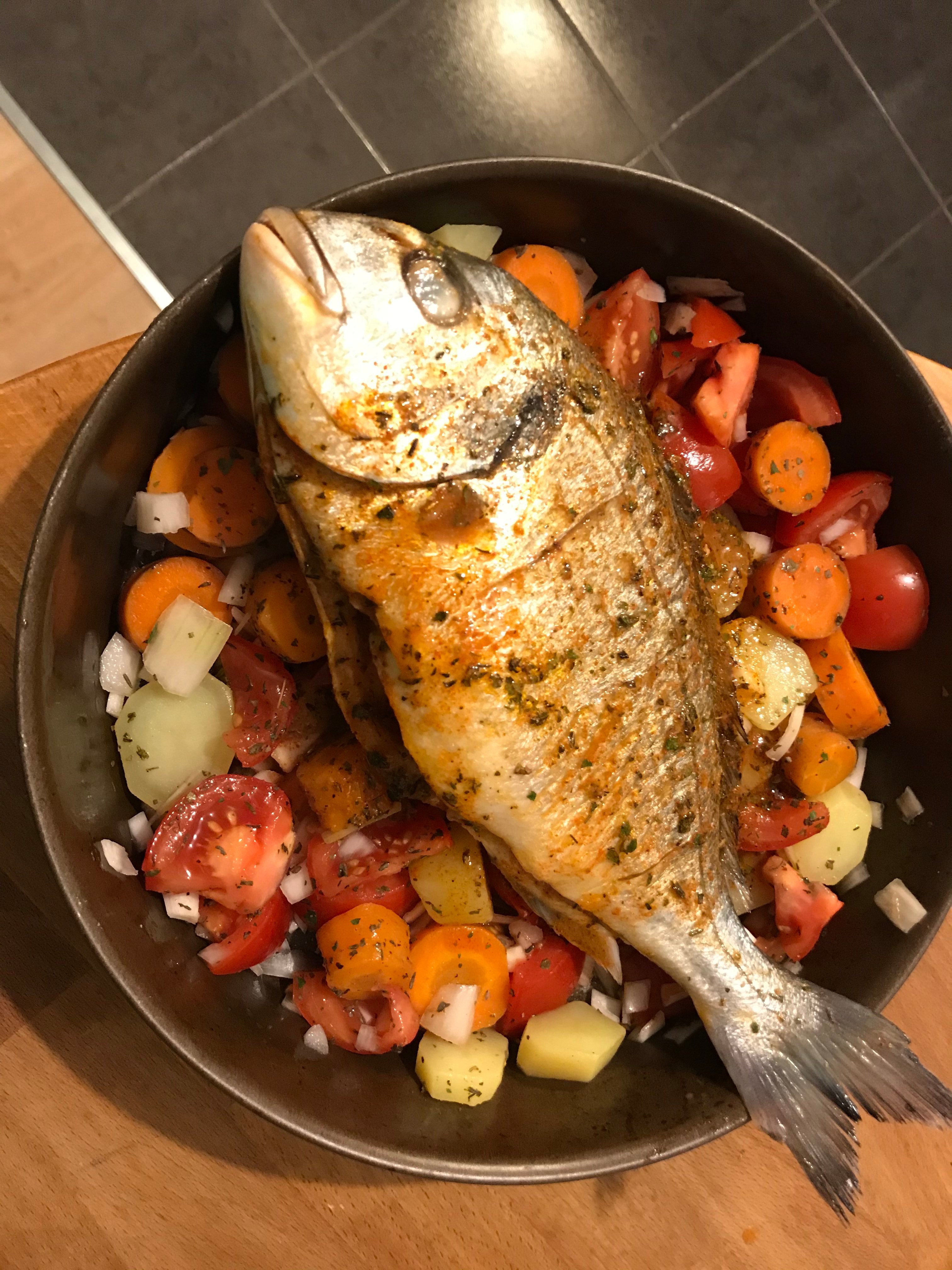 Dorade au four, avec sa marinade