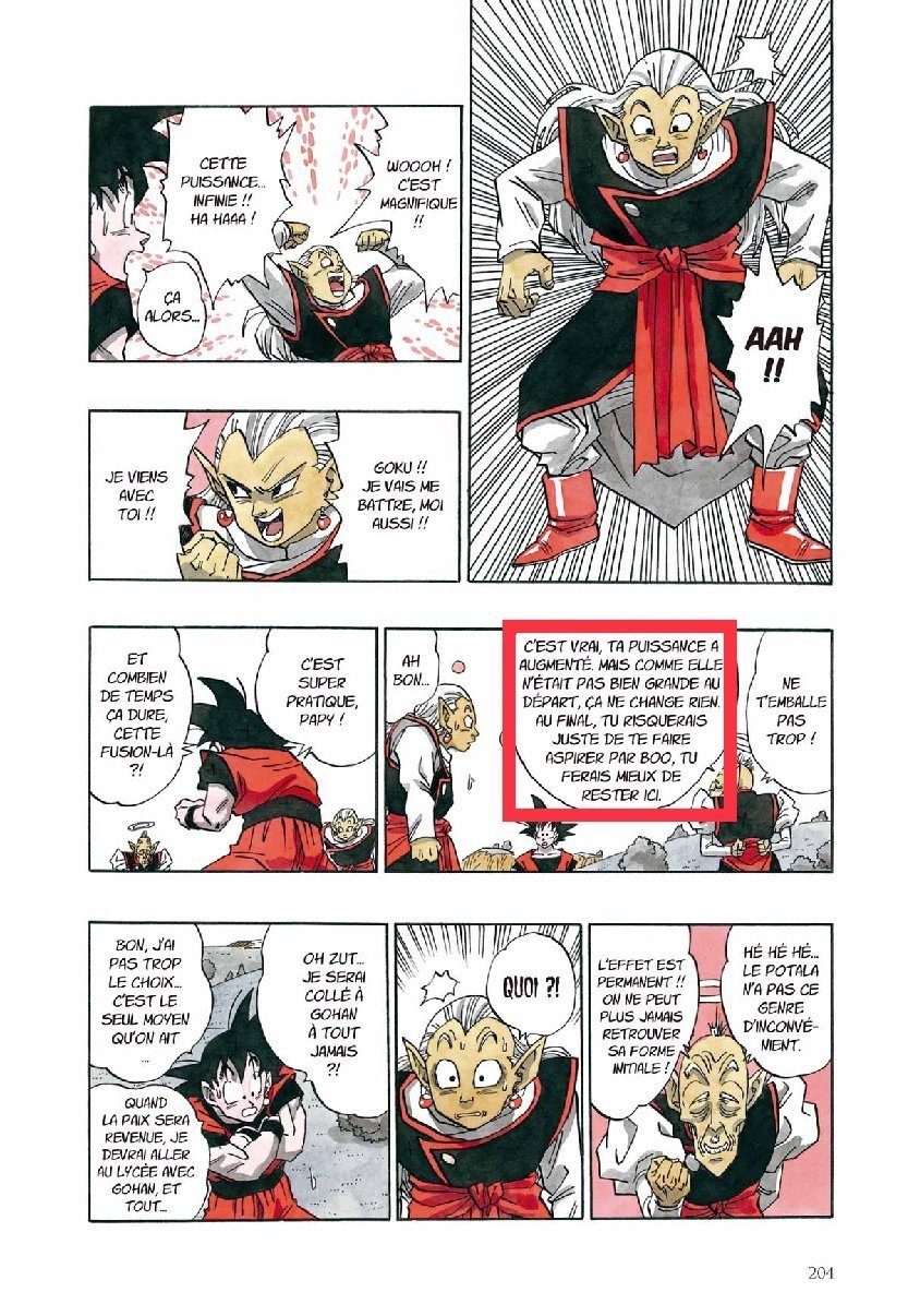 Goku dit bien « Gohan va pouvoir s’en sortir tout seul » il ne parle pas de lui. De plus on sait que jusqu’à maintenant, à part une seule, toute les absorptions on conduit à un gain de puissance, même le Vieux Kaio le dit: