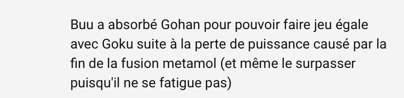Et je ne veux pas entendre le fameux « oui mais il ne se souvient plus d’avoir été Kid Buu ». Et non Trisotin,Buu a des souvenir entre chaque transformation: