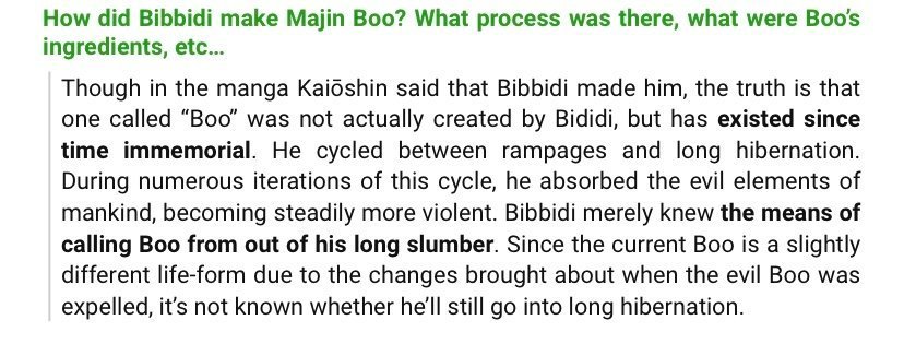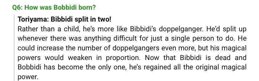 Le même magazine qui dit que kid buu est une création de bibidi le père de babidi, une phrase où il existe deux erreur rectifié par Toriyama lui même. Bibidi n’est pas le père de babidi et kid buu est un être qui existait déjà avant