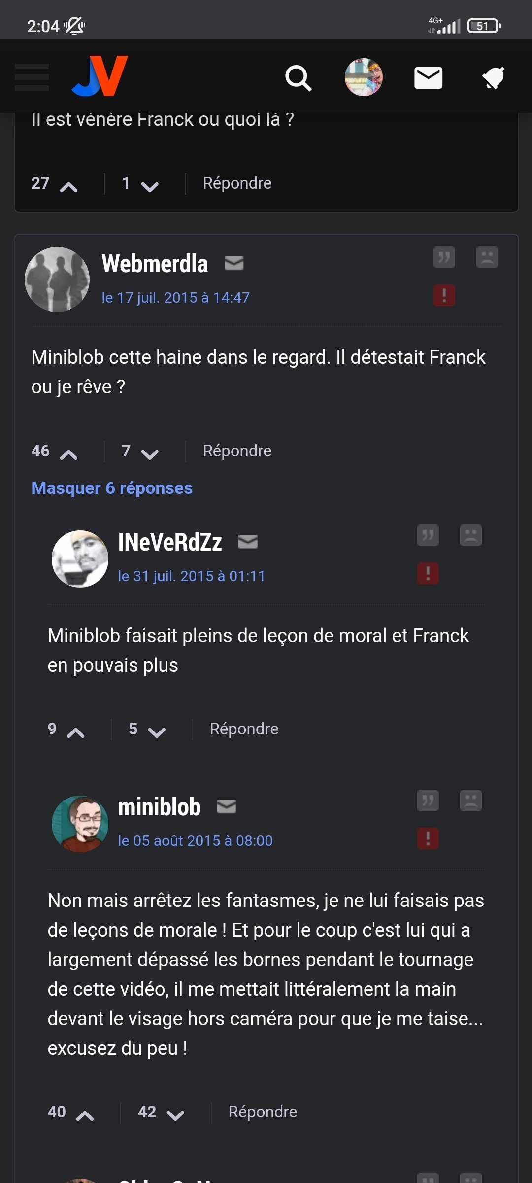 y a pas eu de coup de pression, ça reste très cordialeN'importe quoi, tellement cordiale que miniblob lui même a commenté le GL (la partie 1) pour se plaindre. Va vérifier si tu me crois pas c'est dans une réponse à un des commentaires.