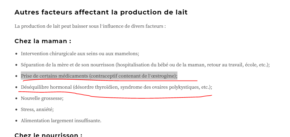 (Qi) Diminution de l'allaitement, soit car la production de lait baisse, dû aux facteurs précédent, ou parce que la femme travaille https://www.dispensaire.ca/articles/facteurs-production-lait-maternel/