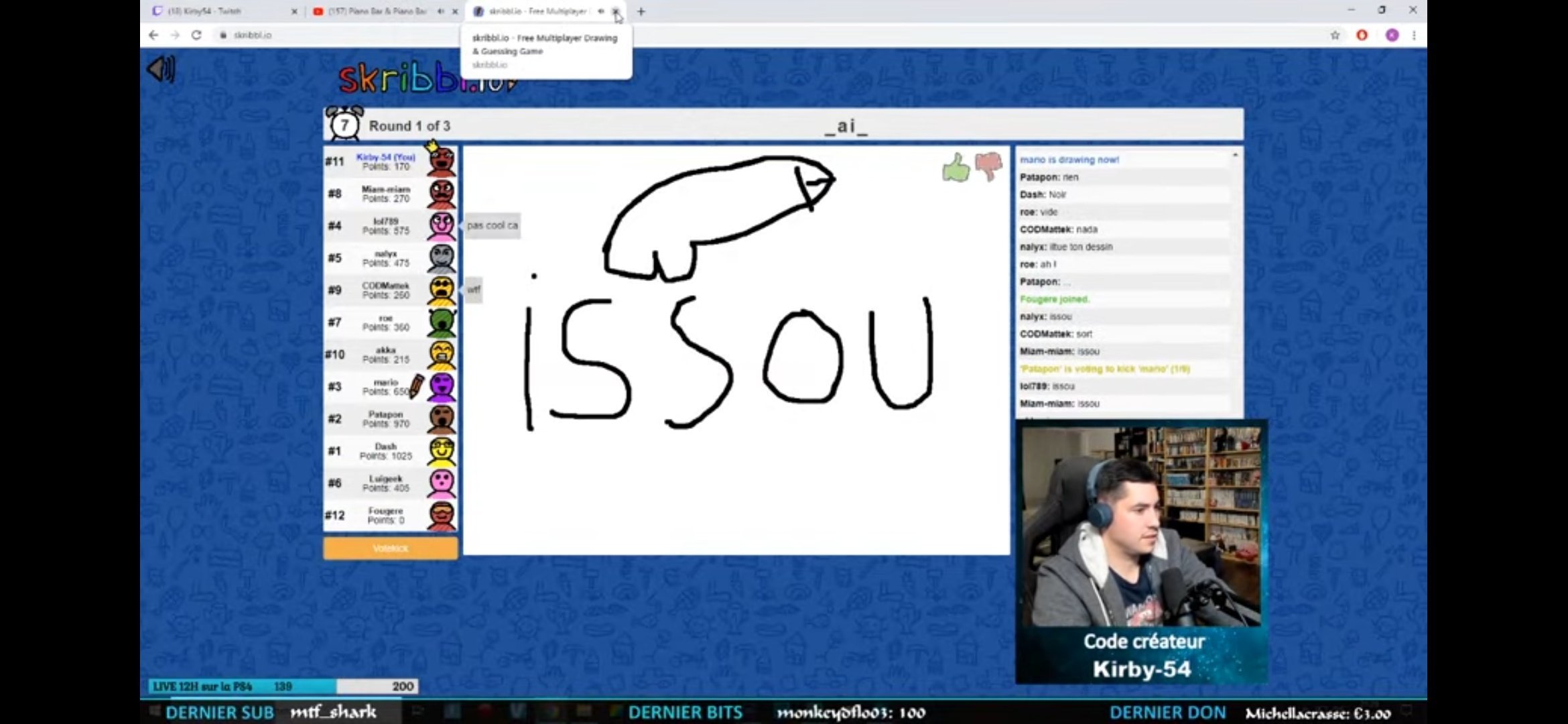 réussir à rentrer dans une game de skribbl de kirby pour dessiner une bite et issou