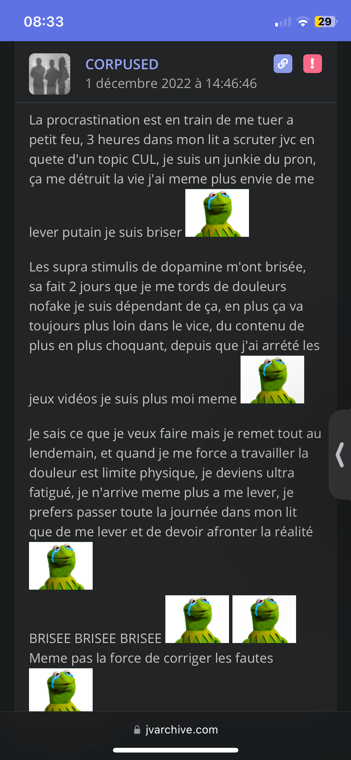 Pour info j’ai mener ma petite enquête et l’op a rater ses rattrapage et a avouer quelques années pus tard que la procastination a gâché sa vie