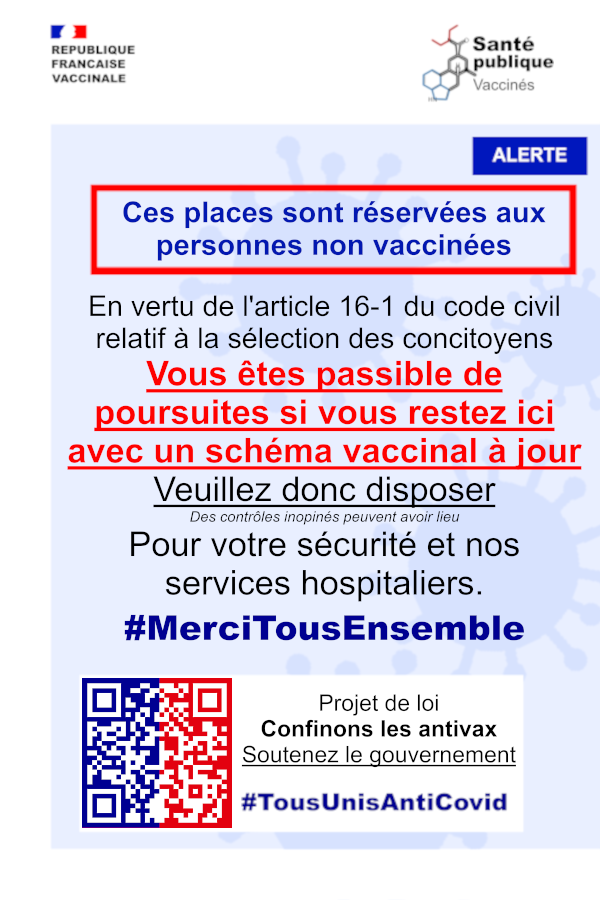 Je préfère un truc plus violent, genre "ces toilettes sont réservés aux personnes non-vaccinées (taux d'argile < 3 doses), tu est prié de disposer le SHILLAX" le tout avec un rappel pour 2022 et ce genre de sticker mindfuck