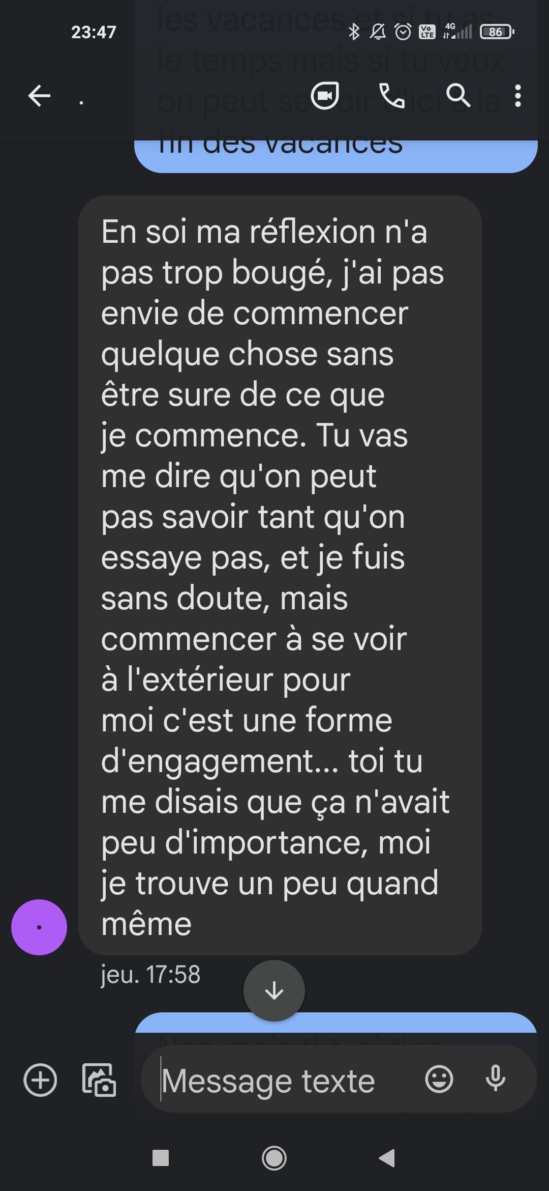 Même pas, juste une meuf de ma classe avec qui j'ai bcp parlé avant les vacances