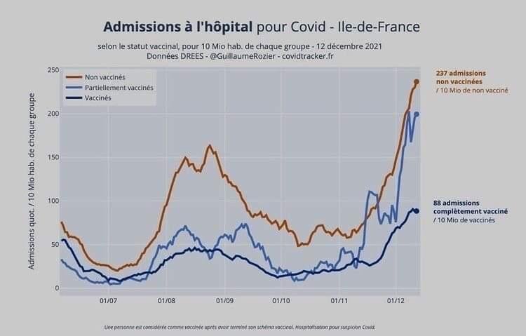 Des données existent. La Direction de la recherche, des études, de l’évaluation et des statistiques (Drees) publie chaque semaine des chiffres issus du croisement des différentes bases de données de Santé publique France : vaccins, tests, hospitalisations… Et ils démontrent bien que les non-vaccinés sont largement plus exposés au Covid-19, surtout aux formes graves de la maladie. Du 1er au 12 décembre, seuls 8 % des plus de 20 ans n’étaient pas du tout vaccinés. Ils représentaient pourtant 23 % des tests PCR positifs, 44 % des hospitalisations, 55 % des admissions en soins critiques et 40 % des décès.