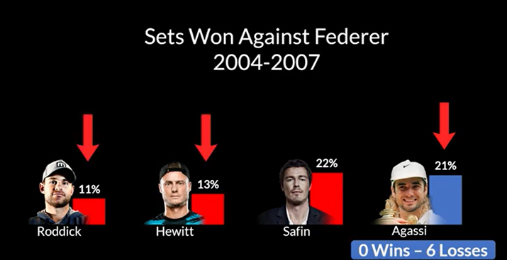 Il suffit d'avoir vu jouer Federer en 2005 et 2006, quand il se déplaçait comme un félin et jouait plus vite que n'importe qui, ça dépasse les chiffres