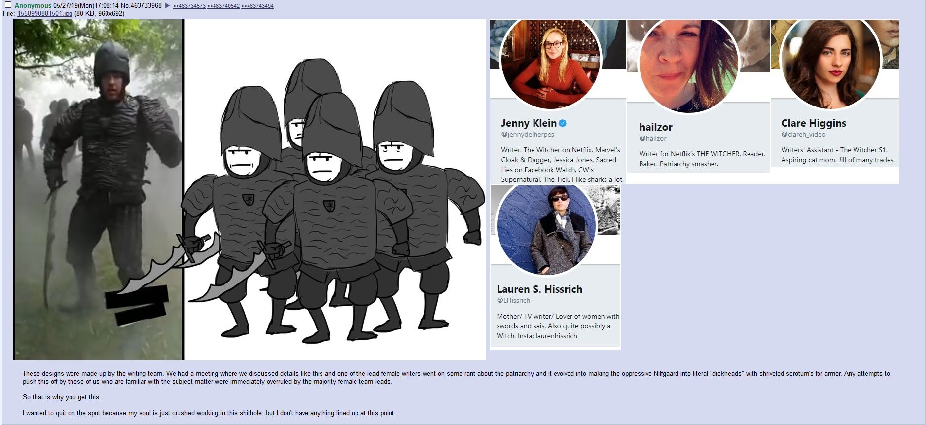 La série n'est qu'un déversoir pour les obsessions idéologiques (cosmopolitisme) et sexuels (Cavill) des productrices et scénaristes qui sont par ailleurs quasi exclusivement des femmes gauchistes.![]()