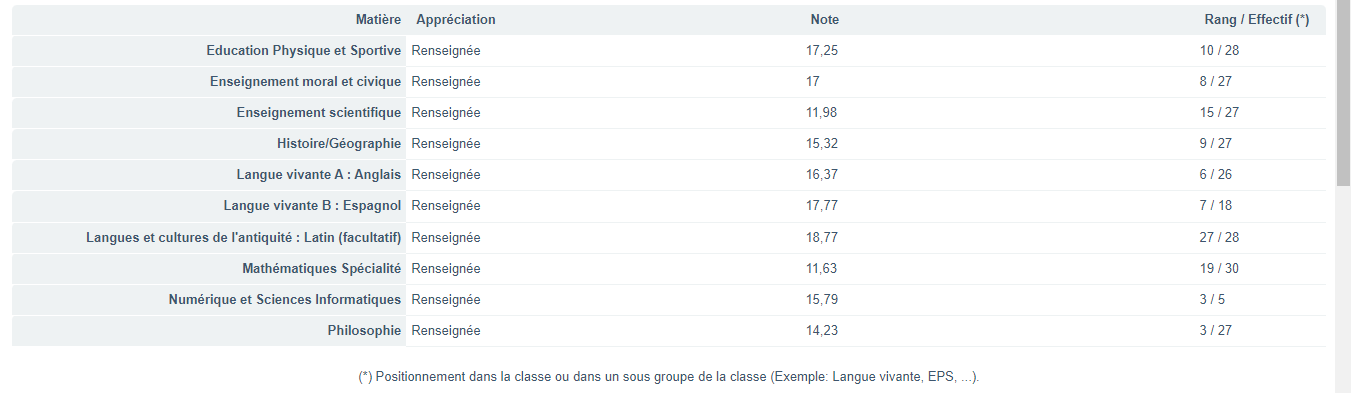bien juste un peu dommage pour la spe maths mais tu m'expliques ton classement en latin avec 18.7 de moyenne