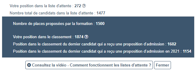 Si votre position dans le classement est supérieur au dernier candidat admis en 2021 : oui vous avez vos chances, sinon c'est mort.
