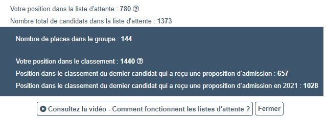 Les kheys pour être clair :Si votre position dans le classement est supérieur au dernier candidat admis en 2021 : oui vous avez vos chances, sinon c'est mort.
