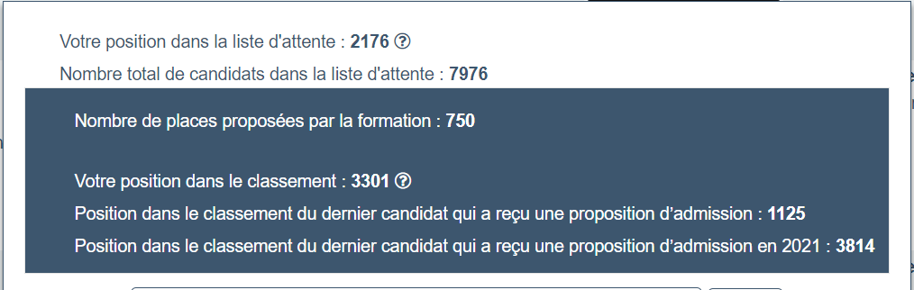 Les kheys pour être clair :Si votre position dans le classement est supérieur au dernier candidat admis en 2021 : oui vous avez vos chances, sinon c'est mort.