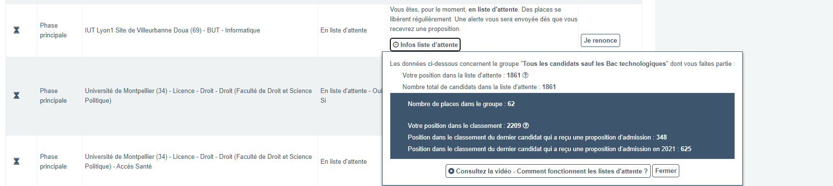 Pour les lettres de motiv, je pense que certaines facs les lisent, surtout pour les kheys qui ont 40 ans et qui s'amènent avec un dossier vide. Moi par ex sur une même licence, je suis au milieu de la liste à la Sorbonne, mais en queue de liste pour Nanterre (j'imagine qu'eux ils lisent pas).